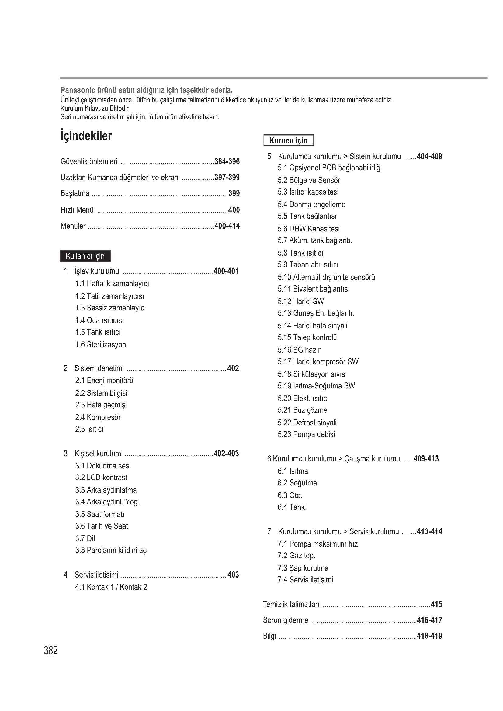 7 Kurulumcu kurulumu > Servis kurulumu ........ 413-414