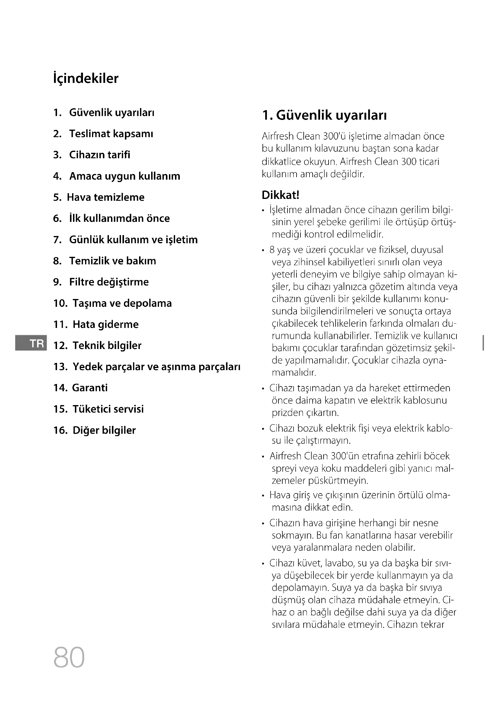 Airfresh Clean 300'ü işletime almadan önce bu kullanım kılavuzunu baştan sona kadar dikkatlice okuyun. Airfresh Clean 300 ticari kullanım amaçlı değildir. Dikkat!