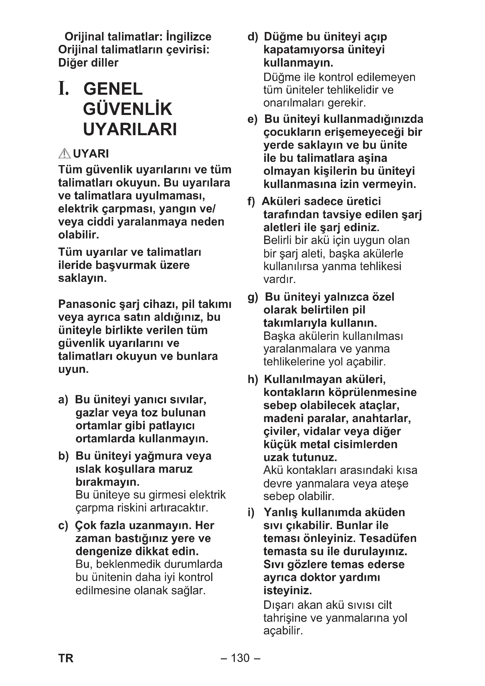 I. GENEL GÜVENLIK UYARILARI
