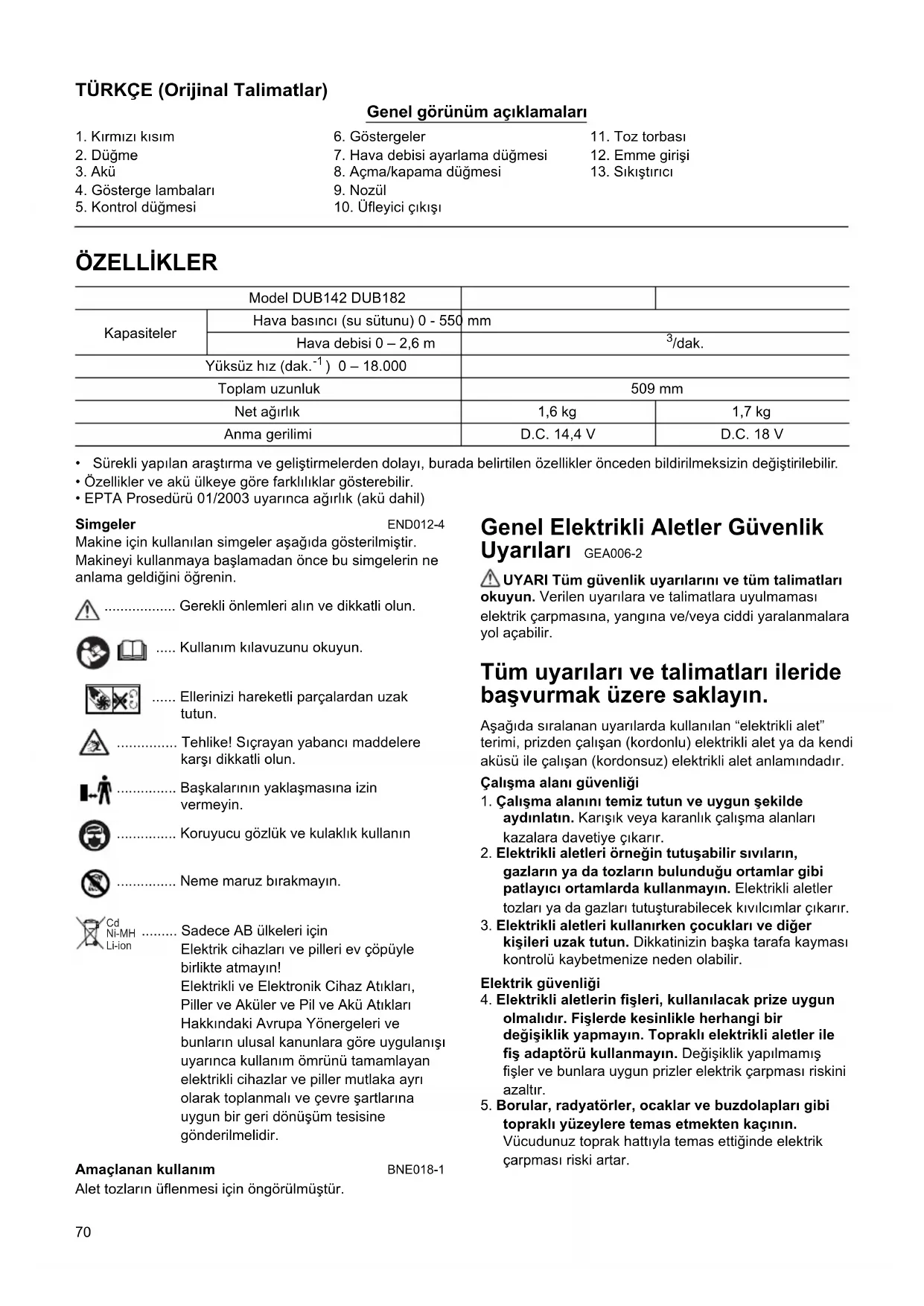 DUB182Z - Yaprak üfleyici MAKITA - Ücretsiz kullanım kılavuzu