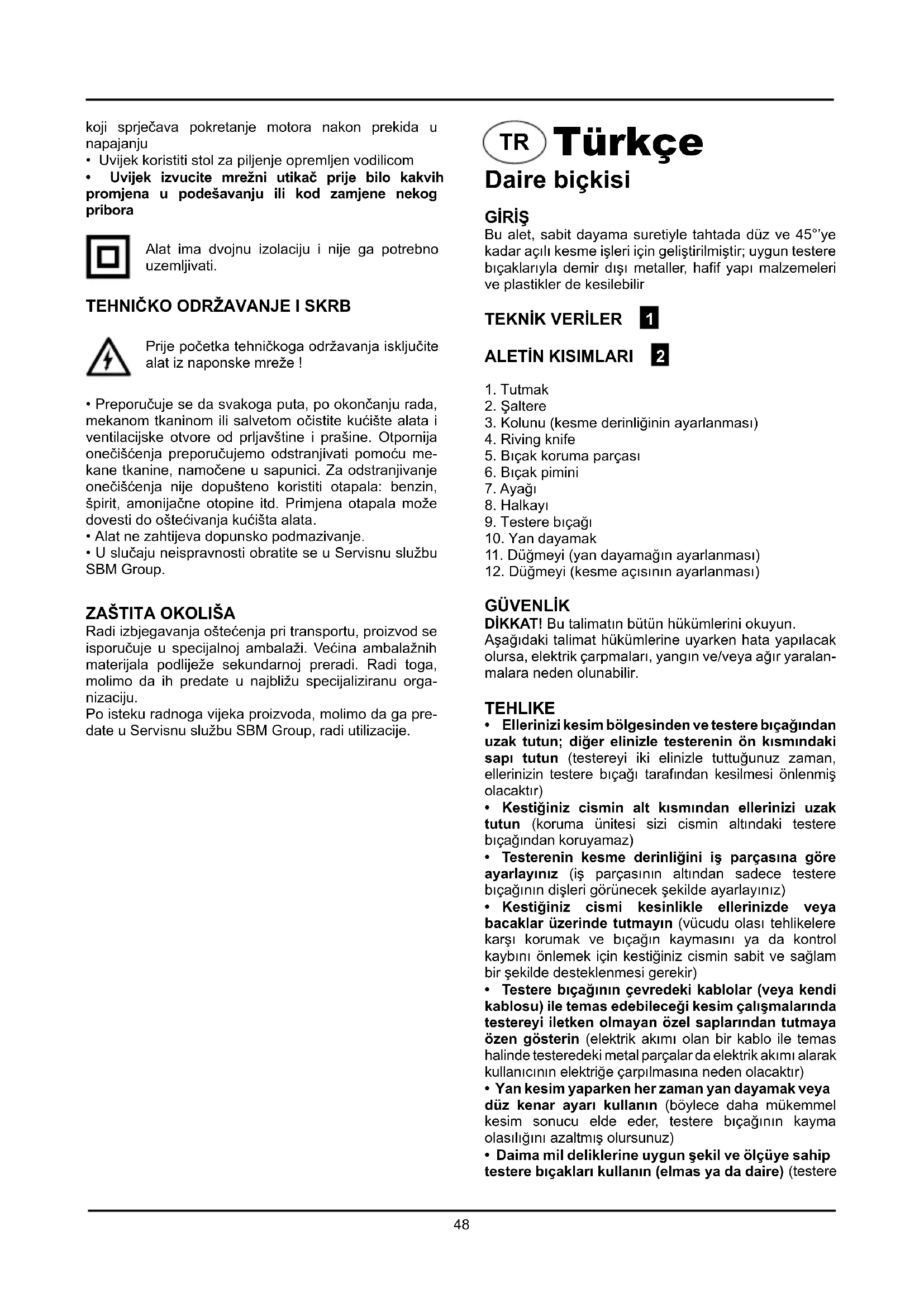 ile uyumlu olmayan bicaklarin takilmasi halinde testere dizensiz bir bicimde calisarak kontrl kaybina neden olacaktir)