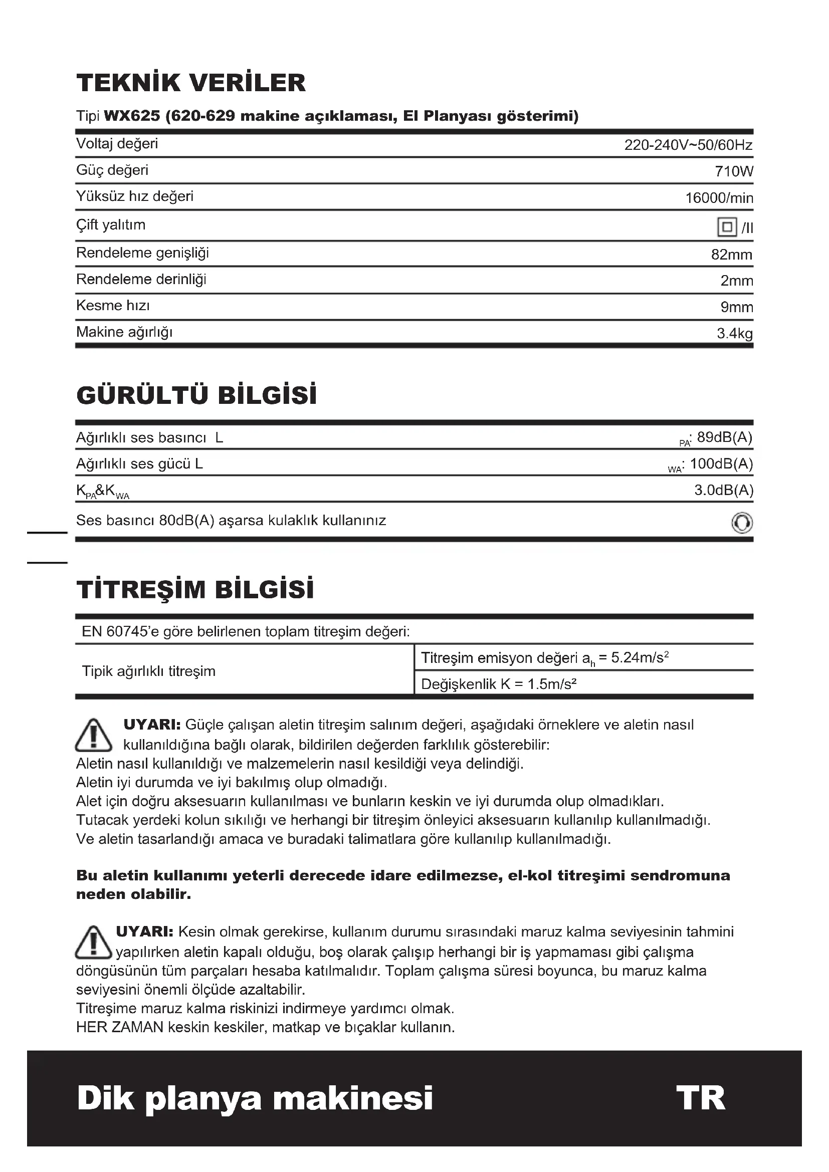 UYARI: Gücle calisman aletin titresim salinim degeri, asagidaki orneklere ve aletin{nasil kullanildına bagl olarak, bildirilen degerden farklilik goztebilir: