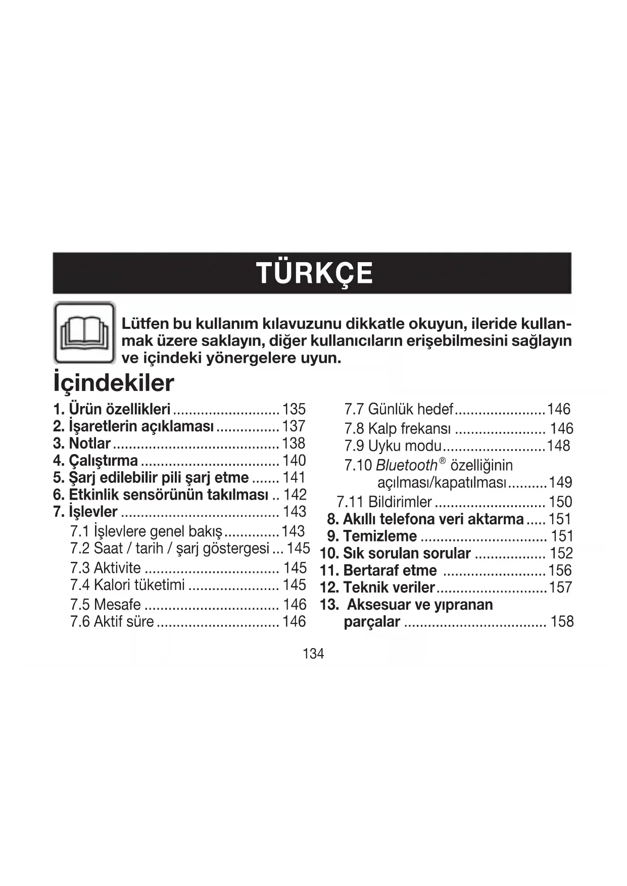- Bu cihaz tibbi bir urun degildir. Etkinlik sensorunun kalp frekansi olcumu hastaliklari teshis ve tedavi etmek, iyilestirmek veya onlemek icin uygun degildir.