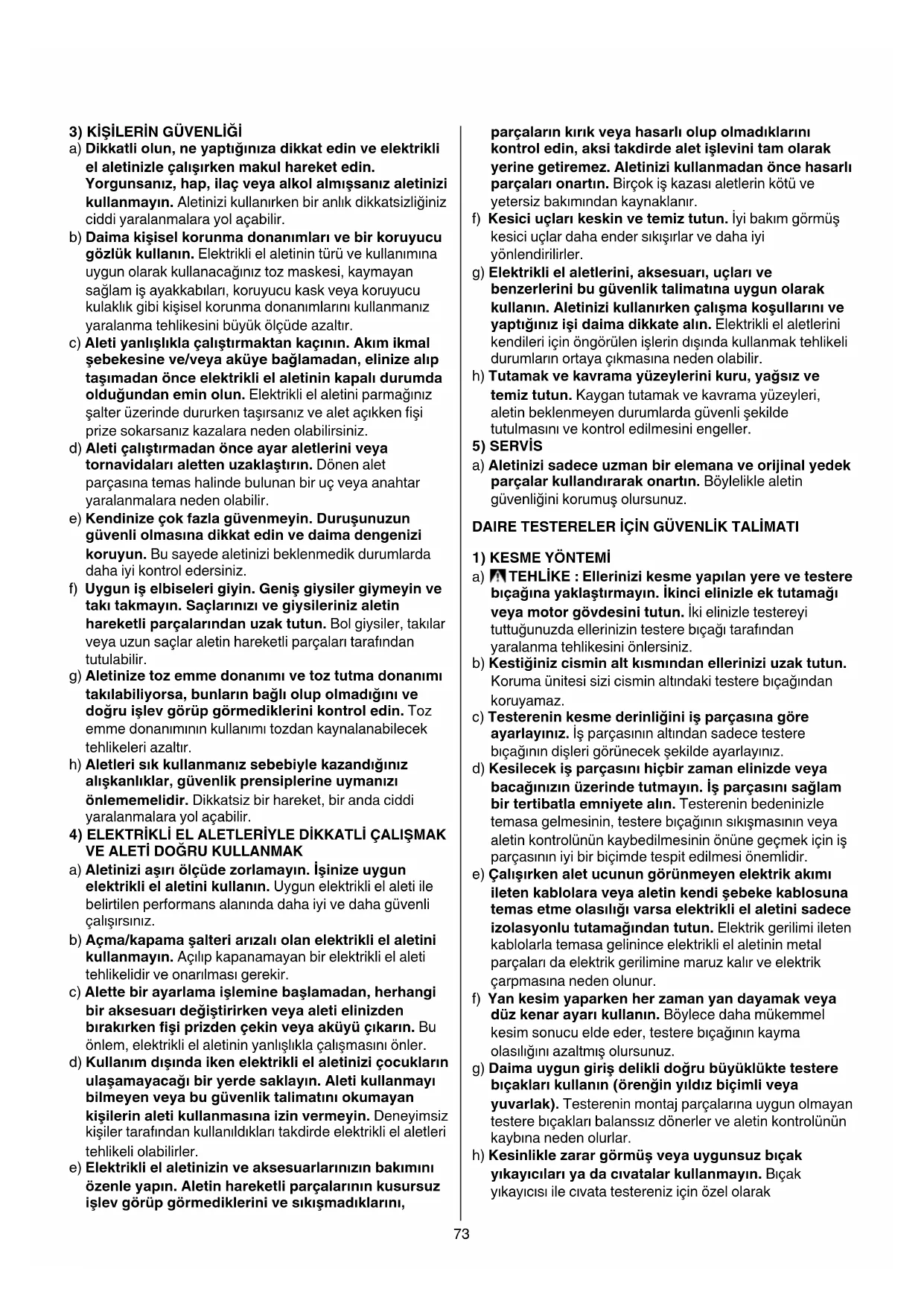 a) Aletinizi sadece uzman bir elemana ve orijinal yedek parçalar kullandırarak onartın. Böylelikle aletin güvenliğini korumuş olursunuz. DAIRE TESTERELER İÇİN GÜVENLİK TALİMATI