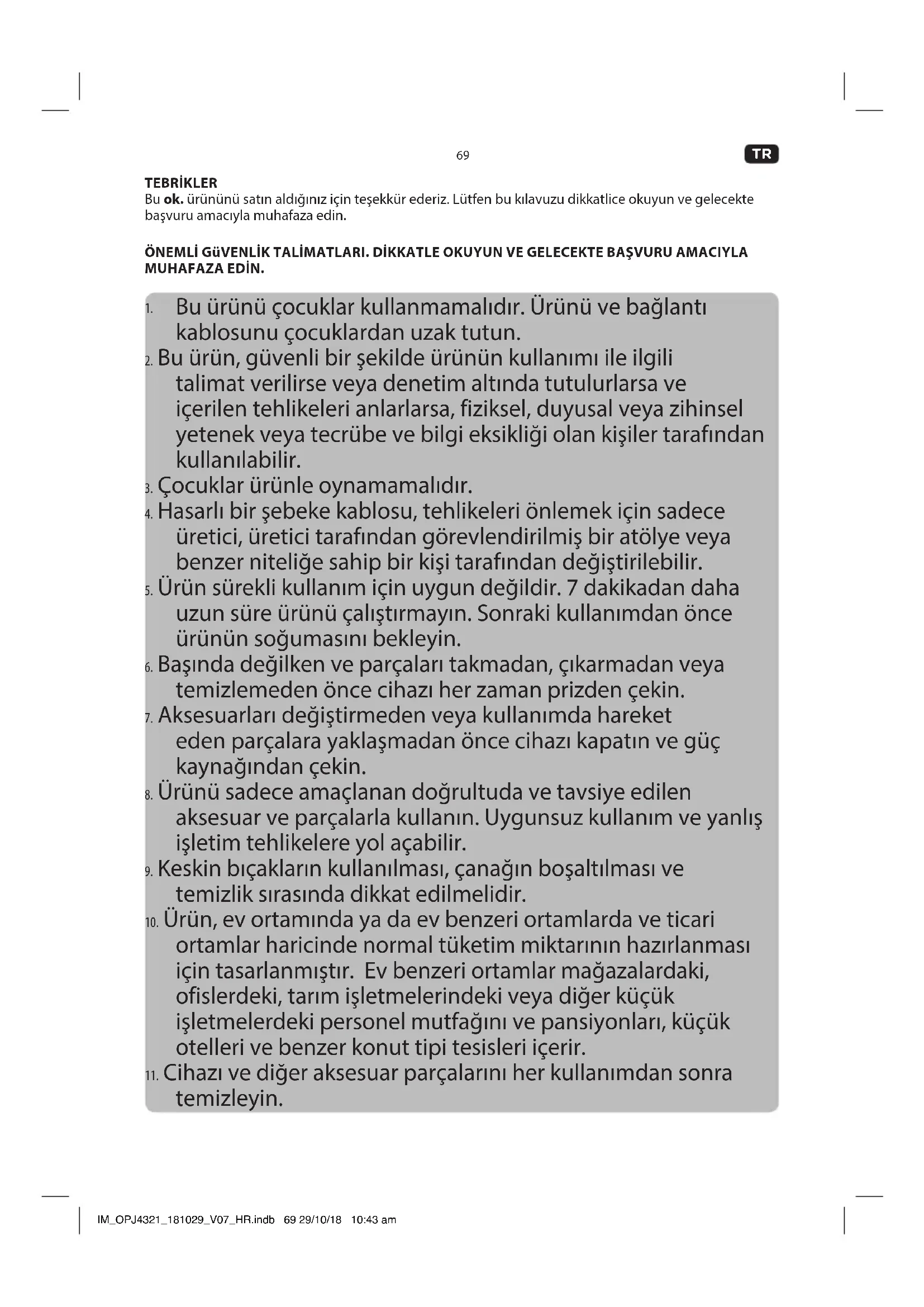 - Cihazı çocuklardan ve evcil hayvanlardan uzak, serin ve kuru bir yerde saklayın. IM_OPJ4321_181029_V07_HR.indb 73 29/10/18 10:43 am74 Size = A5
