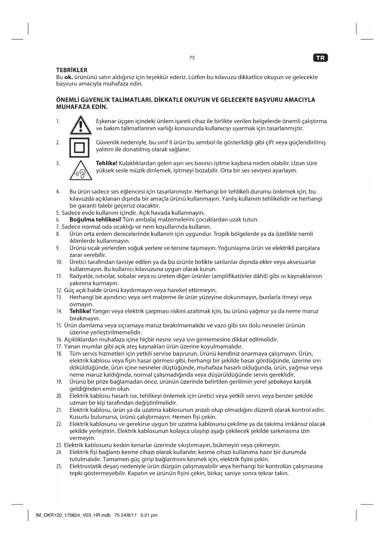 TEBRİKLER Bu ok. ürününü satın aldığınız için teşekkür ederiz. Lütfen bu kılavuzu dikkatlice okuyun ve gelecekte başvuru amacıyla muhafaza edin. ÖNEMLİ GüVENLİK TALİMATLARI. DİKKATLE OKUYUN VE GELECEKTE BAŞVURU AMACIYLA MUHAFAZA EDİN.
