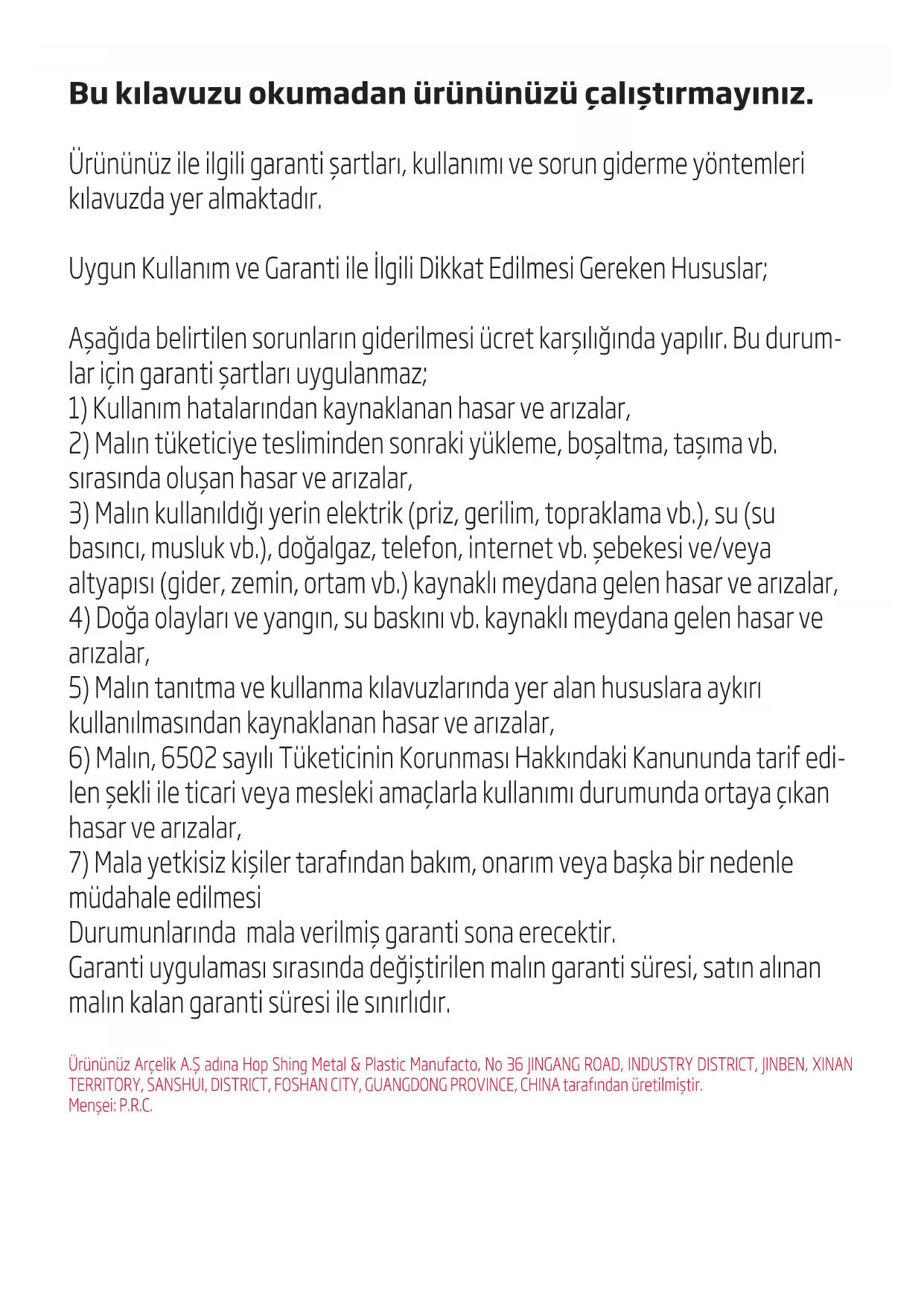 - Toute chute de l'appareil peut le rendre non opérationnel ou l'endommager de façon perma- nente.Bu kılavuzu okumadan ürününüzü çalıştırmayınız. Ürününüz ile ilgili garanti şartları, kullanımı ve sorun giderme yöntemleri kılavuzda yer almaktadır. Uygun Kullanım ve Garanti ile İlgili Dikkat Edilmesi Gereken Hususlar; Aşağıda belirtilen sorunların giderilmesi ücret karşılığında yapılır. Bu durum- lar için garanti şartları uygulanmaz;