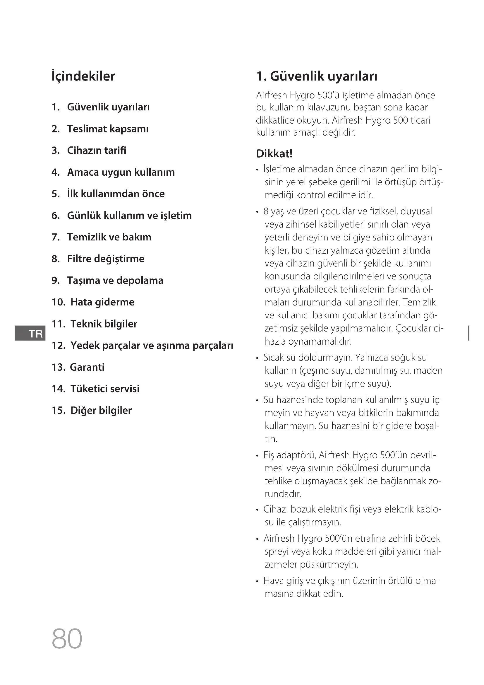 Airfresh Hygro 500’ü işletime almadan önce bu kullanım kılavuzunu baştan sona kadar dikkatlice okuyun. Airfresh Hygro 500 ticari kullanım amaçlı değildir. Dikkat!