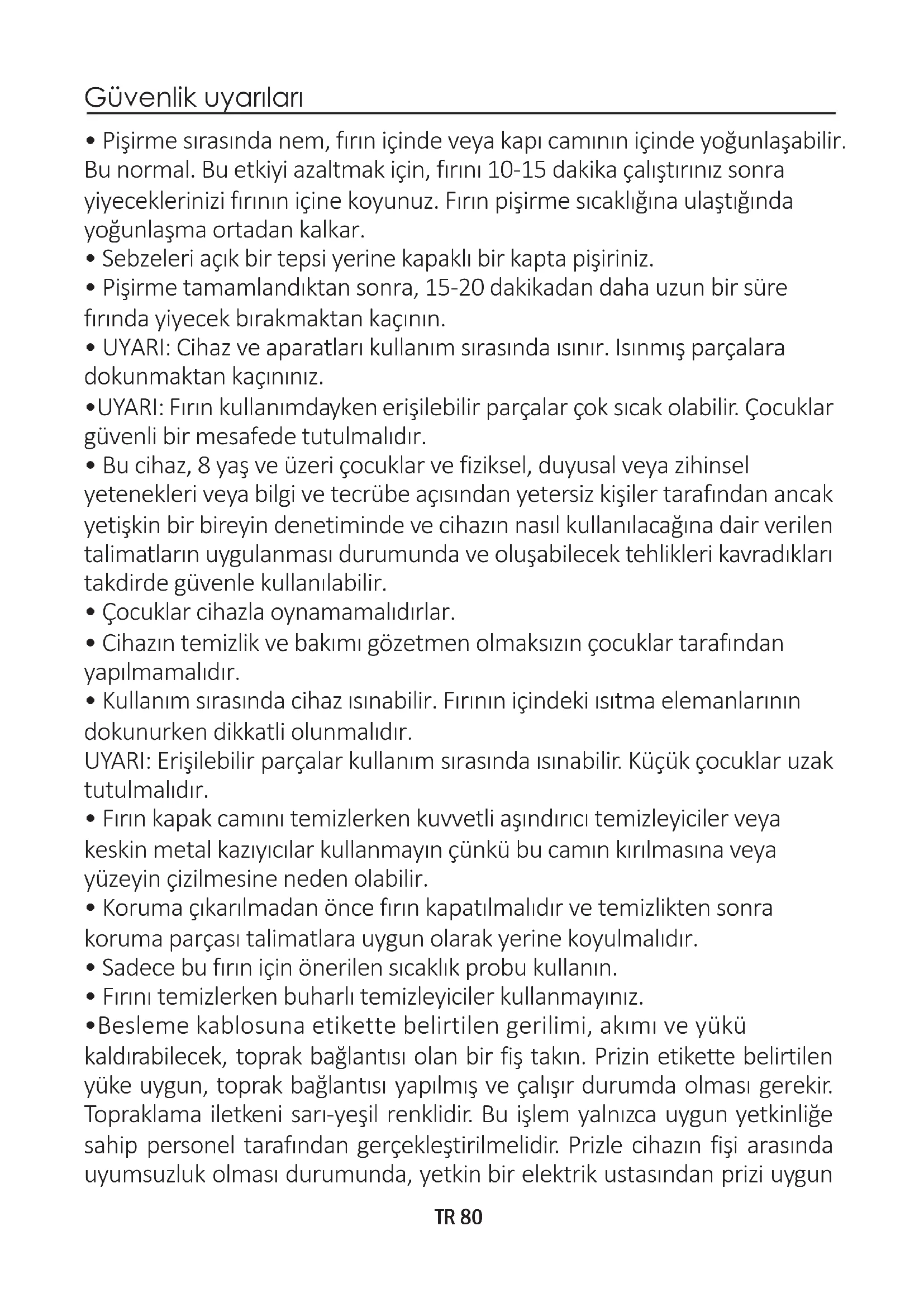 - UYARI: Fırın kullanımdayken erişilebilir parçalar çok sıcak olabilir. Çocuklar güvenli bir mesafede tutulmalıdır.