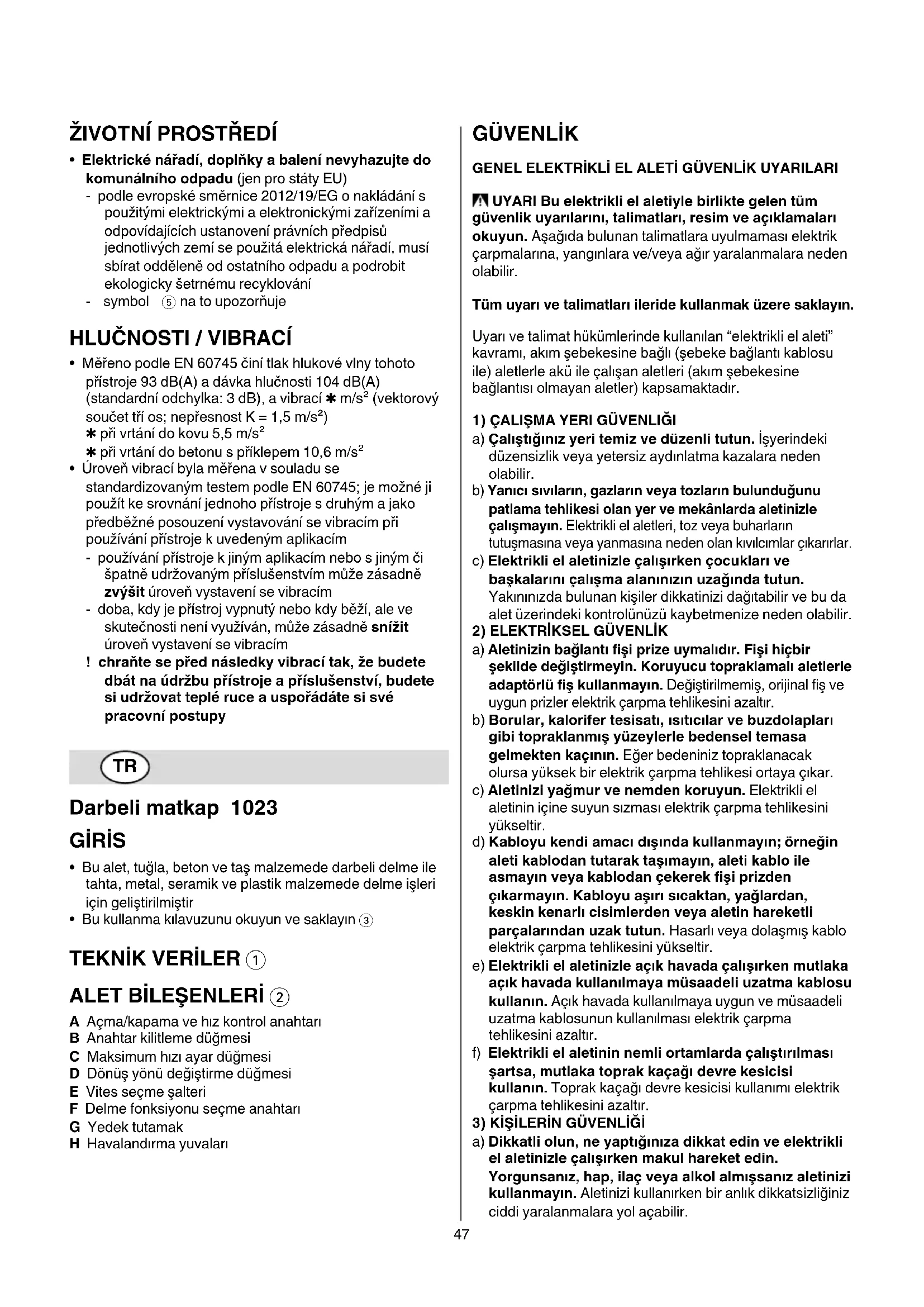 a) Aletinizi sadece uzman bir elemana ve orijinal yedek parçalar kullandırarak onartın. Böylelikle aletin güvenliğini korumuş olursunuz. DARBELI MATKAP İÇİN GÜVENLİK TALİMATI GENEL