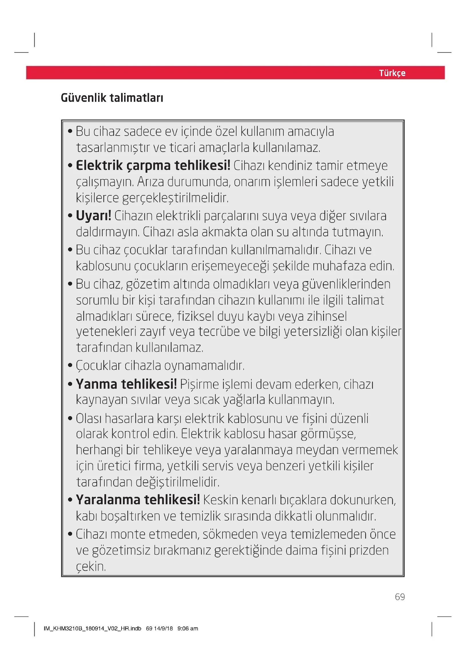 - Temizlik ve bakım bölümünü dikkate alın. IM_KHM3210B_180914_V02_HR.indb 70 14/9/18 9:06 am71 Türkçe Güvenlik talimatları