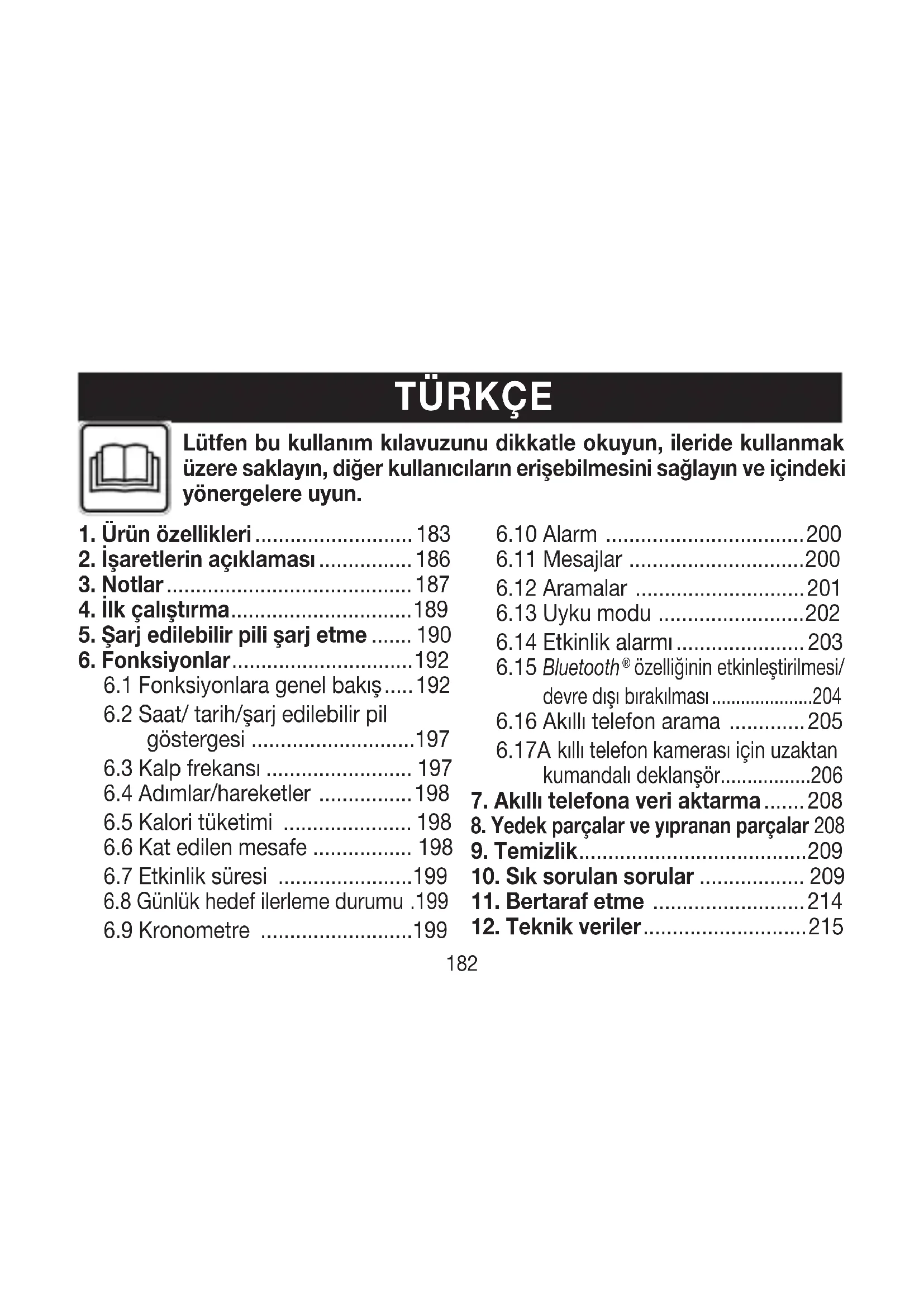 Etkinlik sensörü Kullanım kılavuzu ...........182