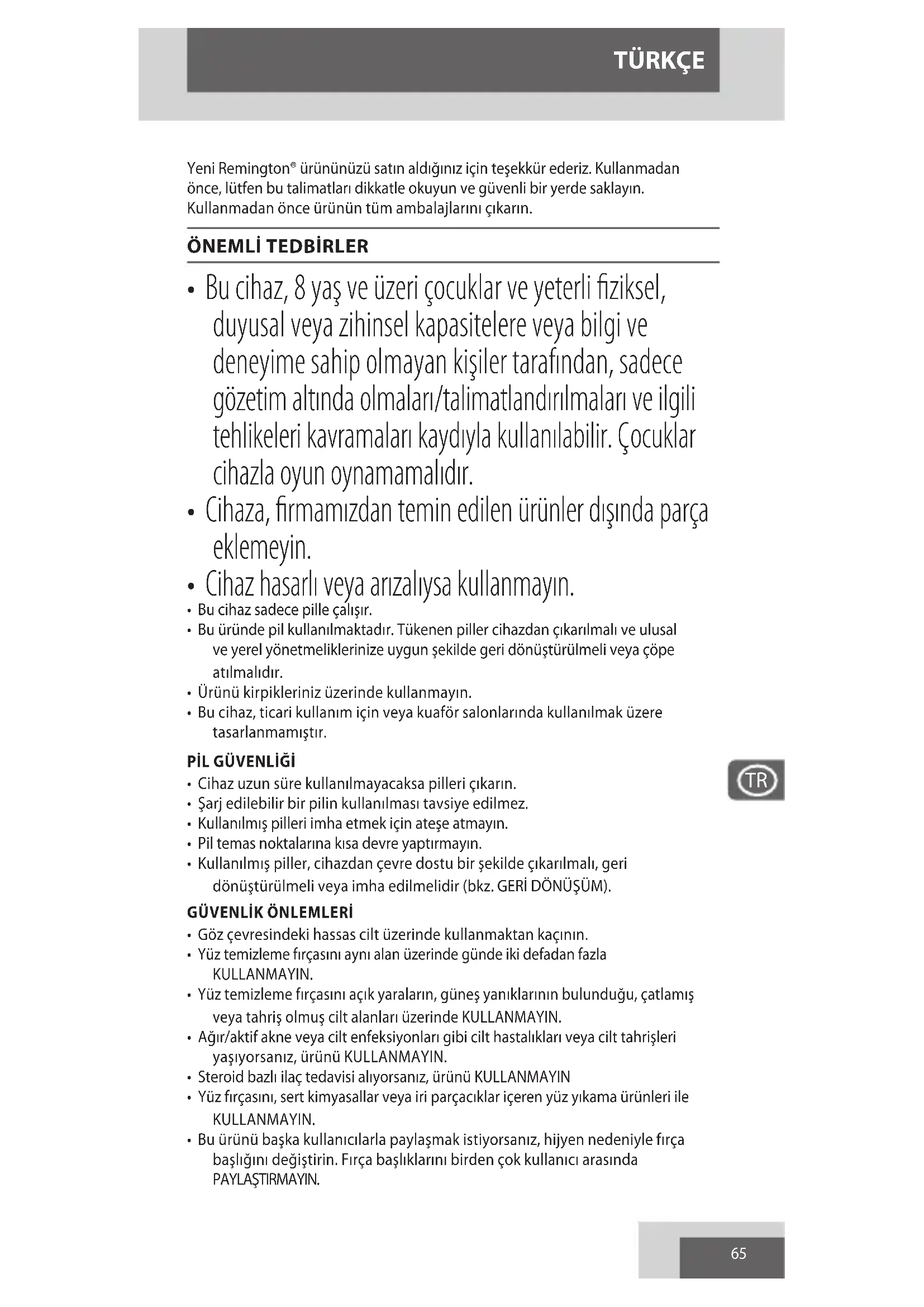 Yeni Remington® ürününüzü satın aldığınız için teşekkür ederiz. Kullanmadan önce, lütfen bu talimatları dikkatle okuyun ve güvenli bir yerde saklayın. Kullanmadan önce ürünün tüm ambalajlarını çıkarın.