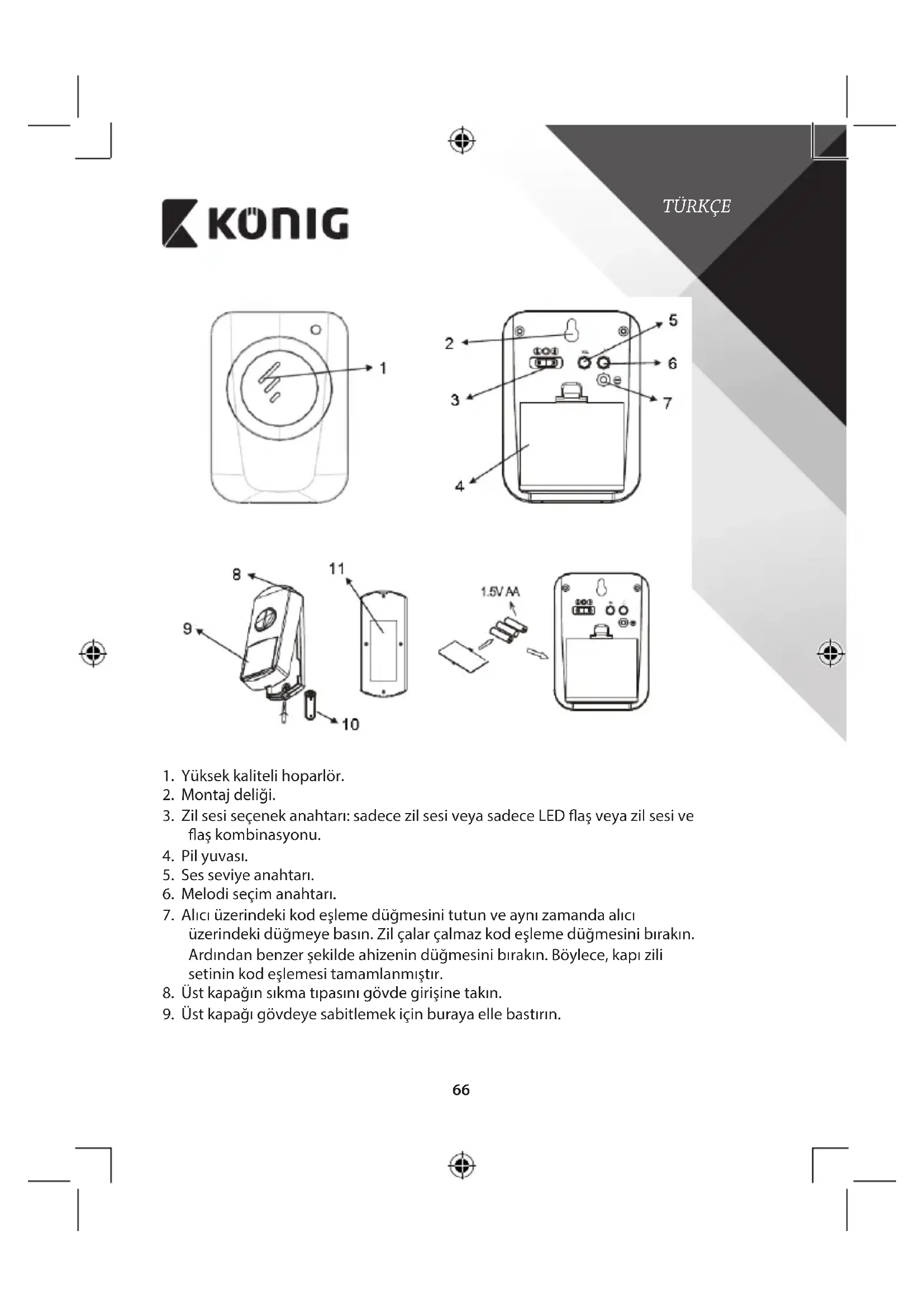 3. Zil sesi seçenek anahtarı: sadece zil sesi veya sadece LED aş veya zil sesi ve
