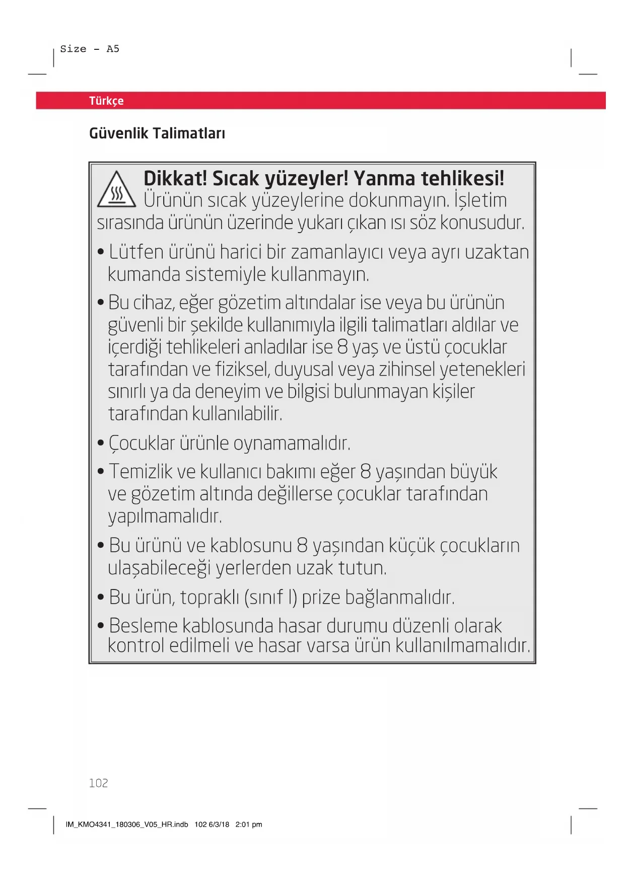 - Temizlik ve koruyucu bakim bölümünü dikkate alın. IM_KMO4341_180306_V05_HR.indb 103 6/3/18 2:01 pmSize - A5 Türkçe