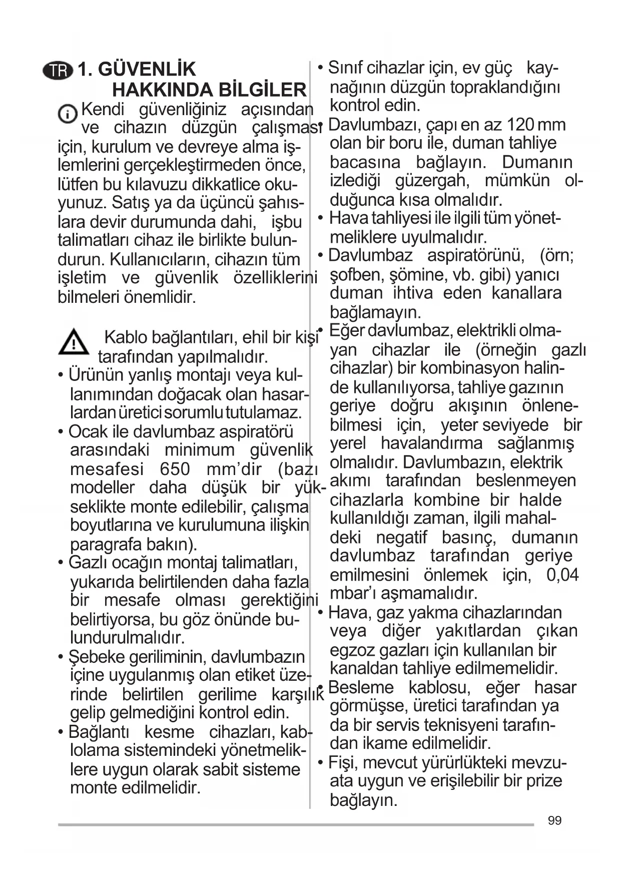 - Davlumbazı asla tasarlandığı amaçlar haricindekullanmayın.