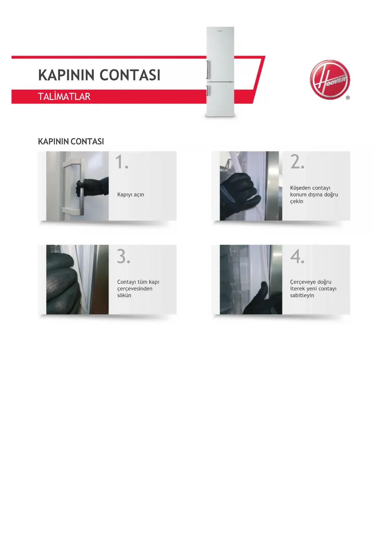 KOLTALİMATLAR Kapıyı açın Köşeden contayı konum dışına doğru çekin
