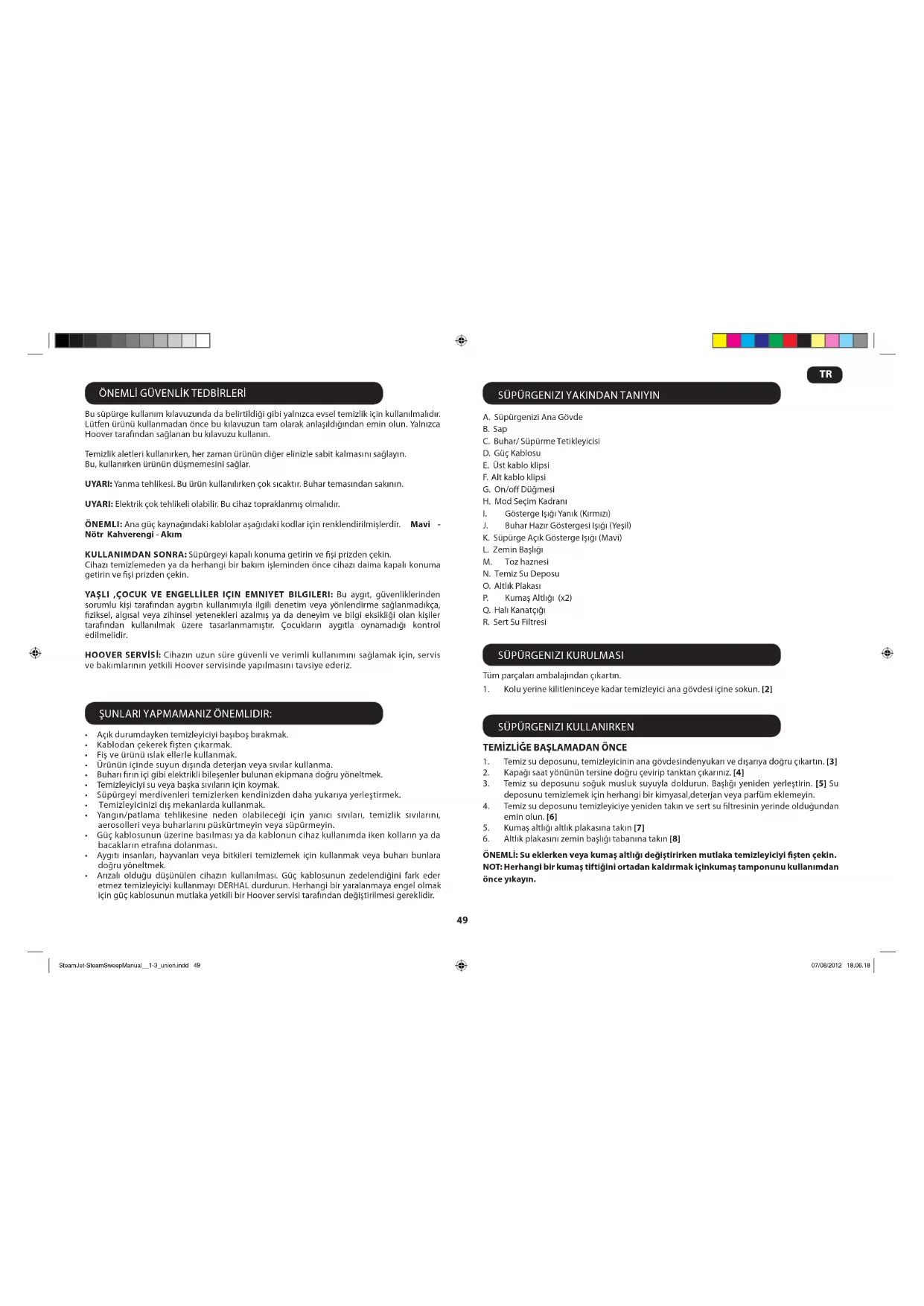 KULLANIM KILAVUZU SteamJet SSW1700 011 HOOVER