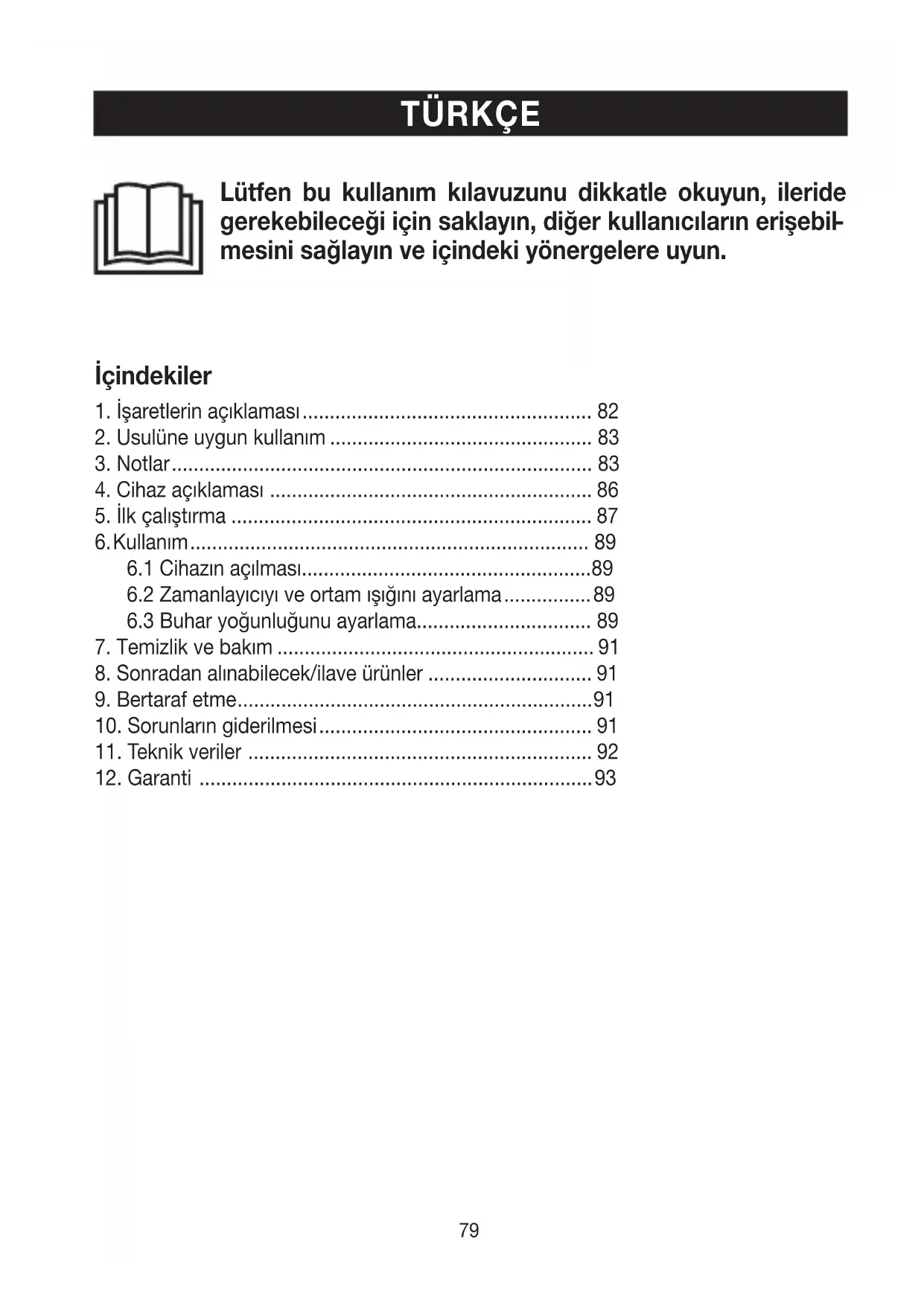Lüften bu kullanim kilavuzunu dikkatle okuyun, ileride gerekebileceşi icin saklayin, diger kullanıclarin erişebilmesini-SAglayin ve icindeki yönergelere uyun.