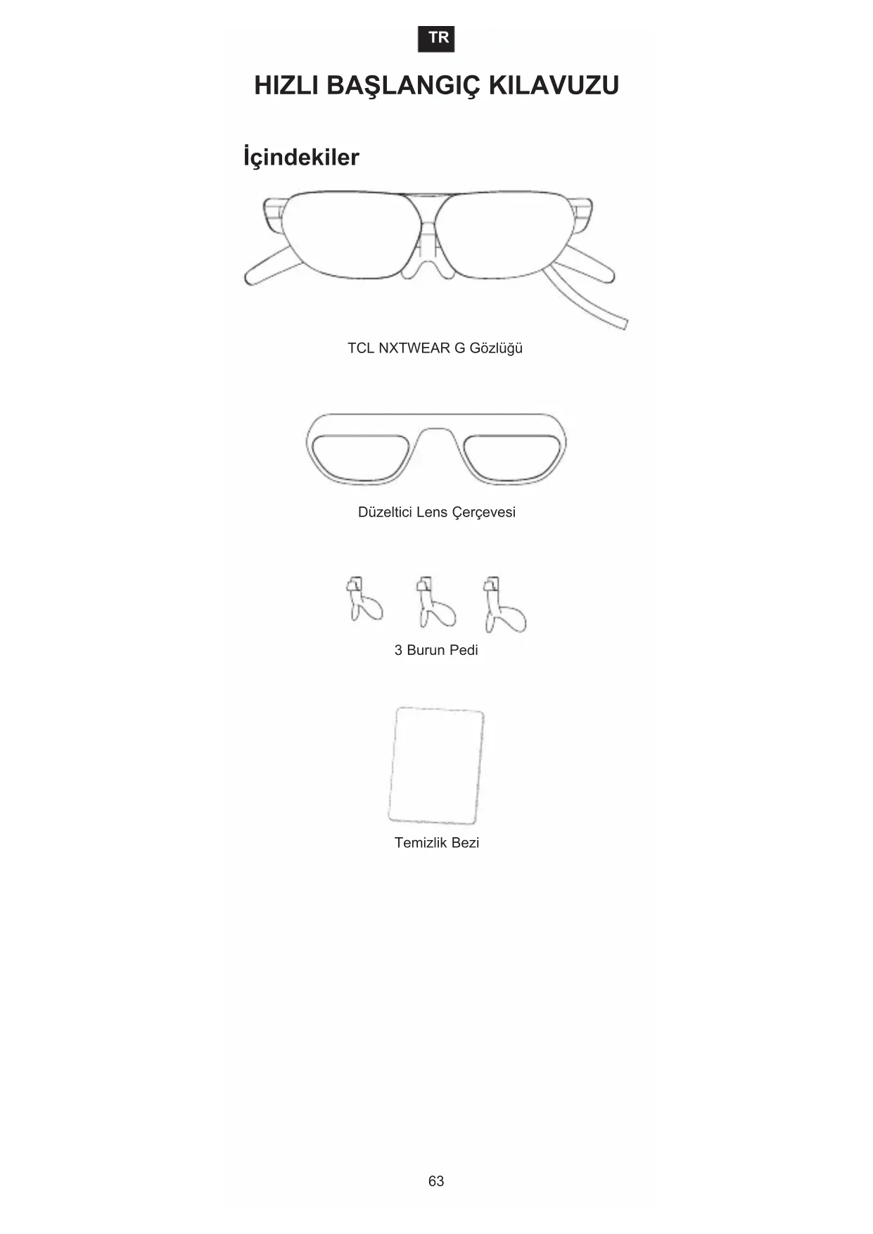 İçindekiler TCL NXTWEAR G Gözlüğü Düzeltici Lens Çerçevesi 3 Burun Pedi Temizlik Bezi64