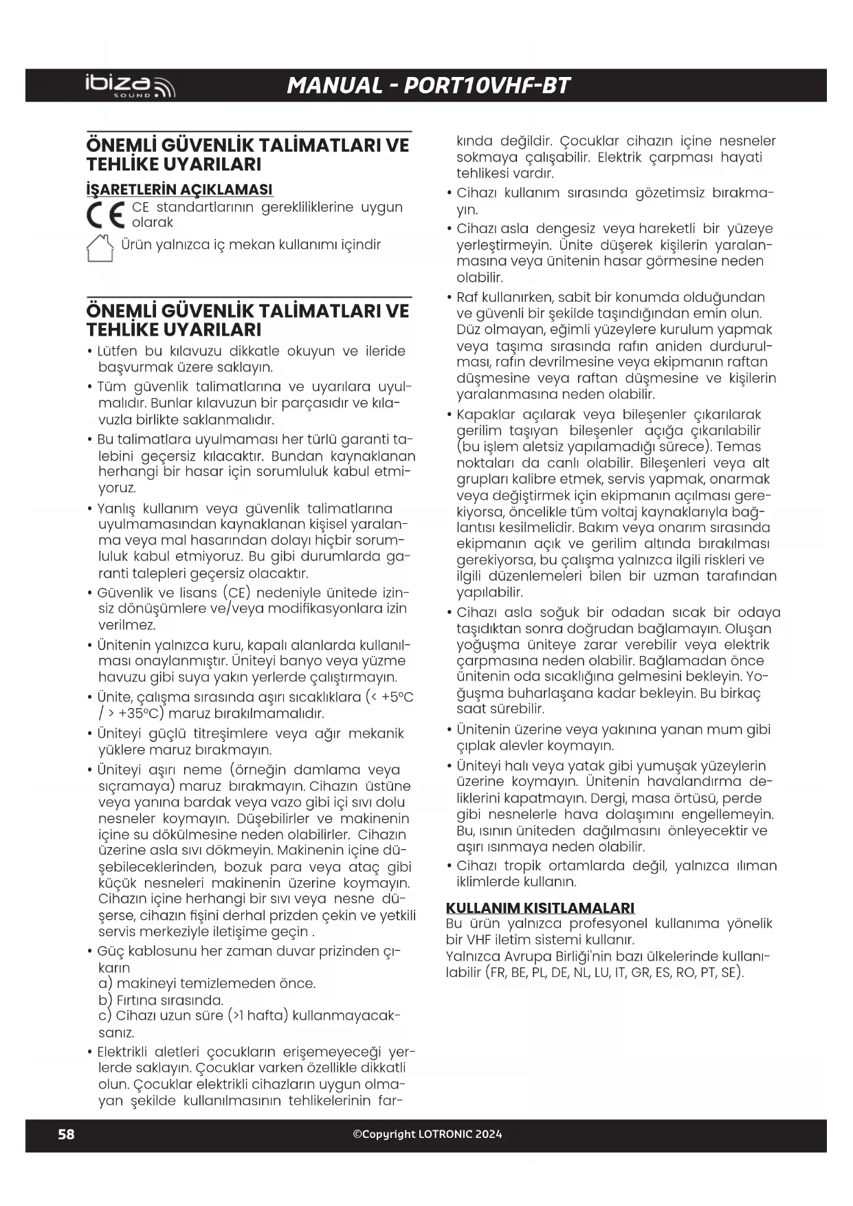 KULLANIM KILAVUZU PORT10VHFBT IBIZA SOUND