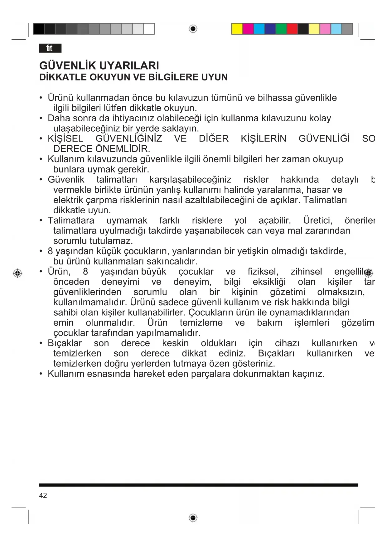 - Ürünükullanmadanöncebukılavuzuntümünüvebilhassagüvenlikle ilgilibilgilerilütfendikkatleokuyun.