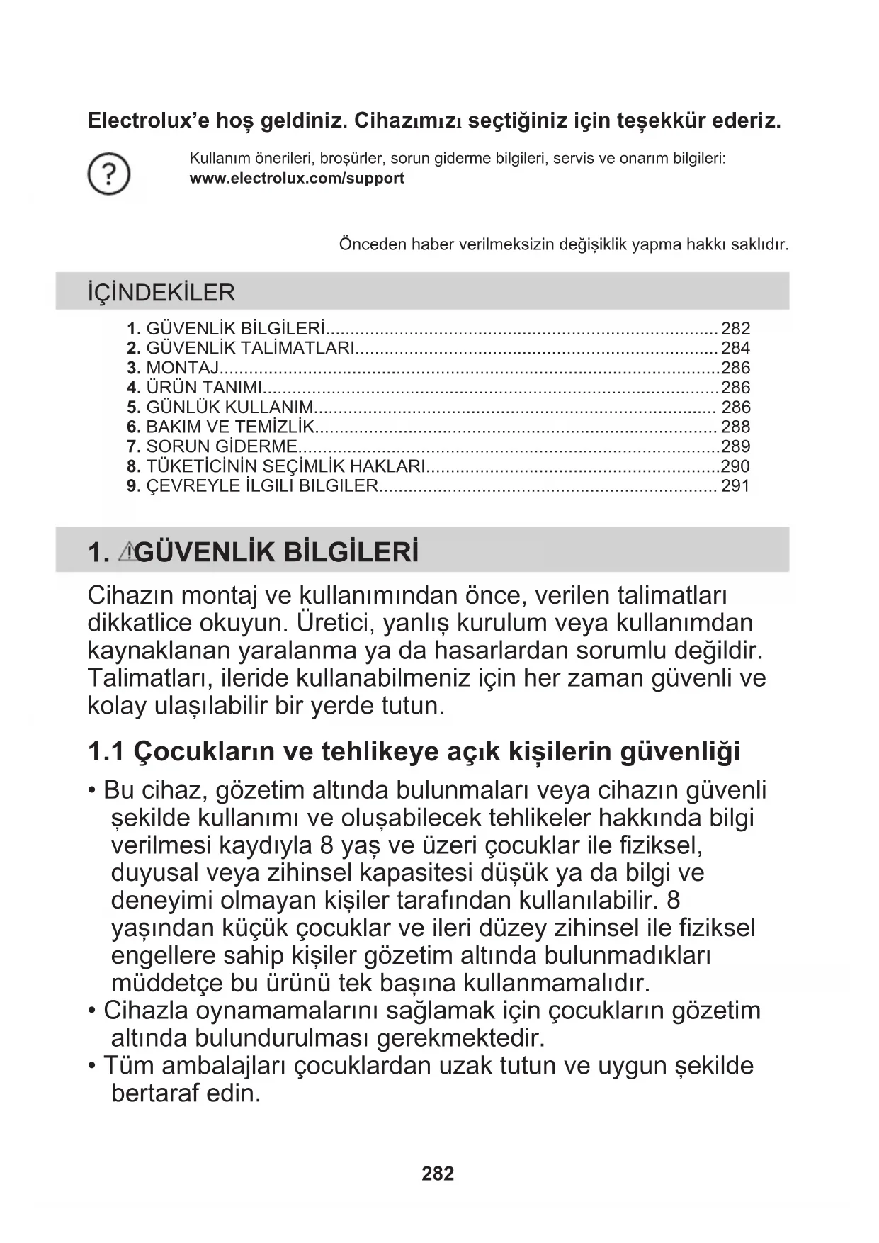 - Tüm ambalajları çocuklardan uzak tutun ve uygun şekilde bertaraf edin. 282• Cihaz çalışırken çocukları ve hayvanları cihazdan uzak tutun.