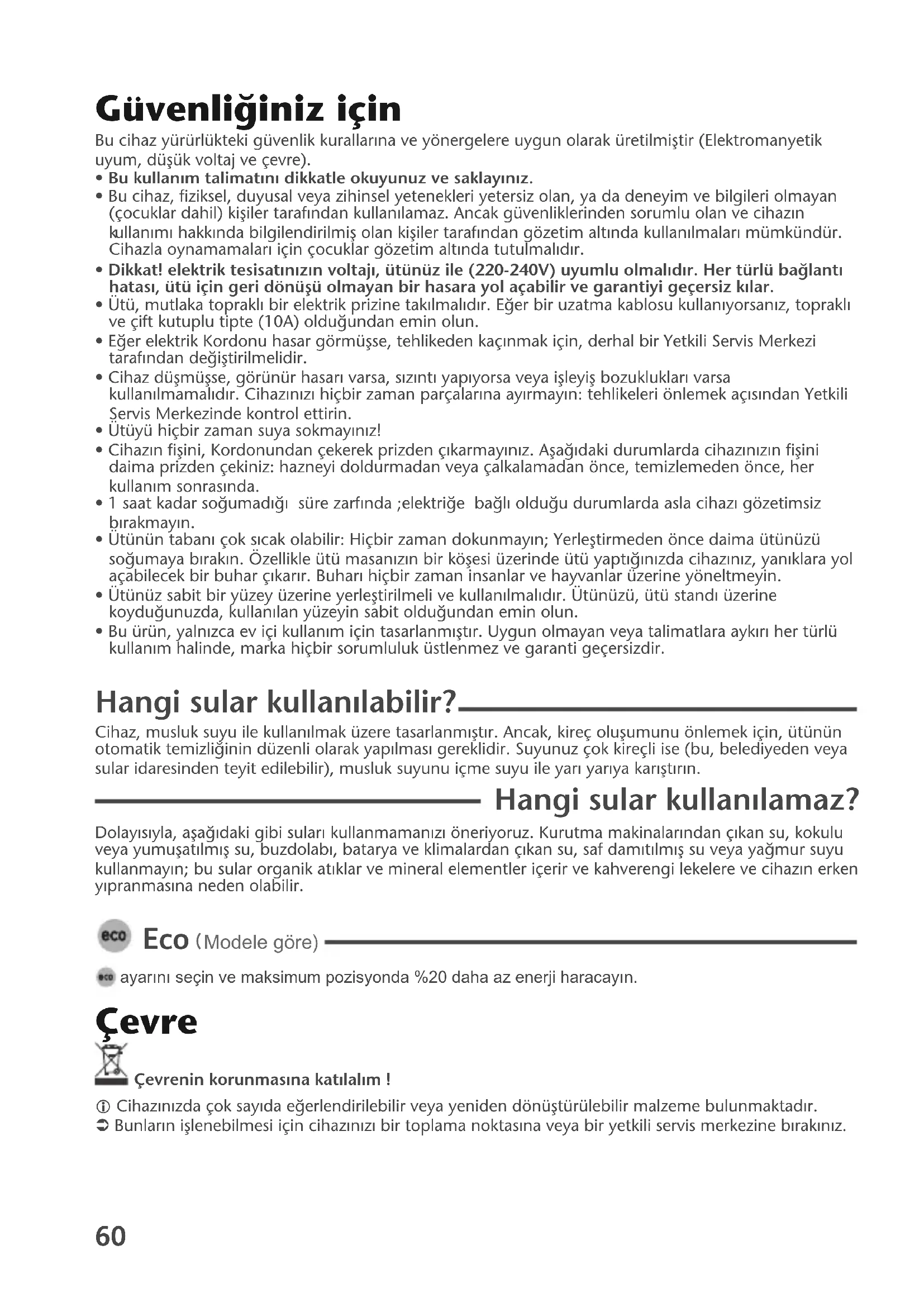 Modele göre) ayarını seçin ve maksimum pozisyonda %20 daha az enerji haracayın. Çevre Çevrenin korunmasına katılalım ! i Cihazınızda çok sayıda e¤erlendirilebilir veya yeniden dönüfltürülebilir malzeme bulunmaktadır. ‹ Bunların ifllenebilmesi için cihazınızı bir toplama noktasına veya bir yetkili servis merkezine bırakınız.