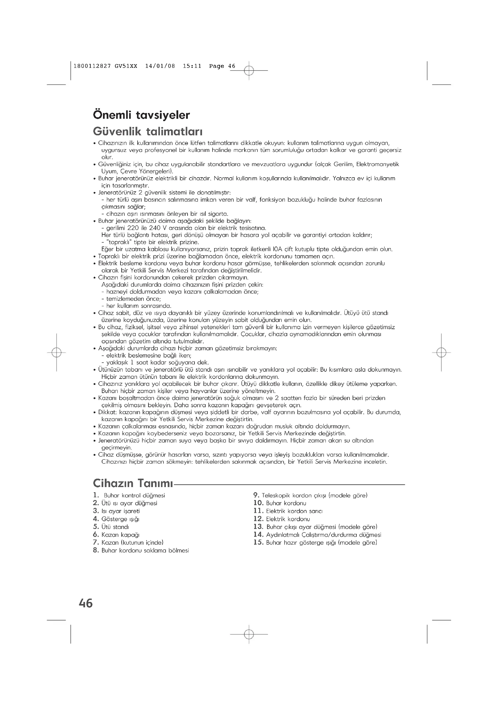 - Buhar jeneratörünüz elektrikli bir cihazdr. Normal kullanm koşullarnda kullanlmaldr. Yalnzca ev içi kullanm için tasarlanmıştır.