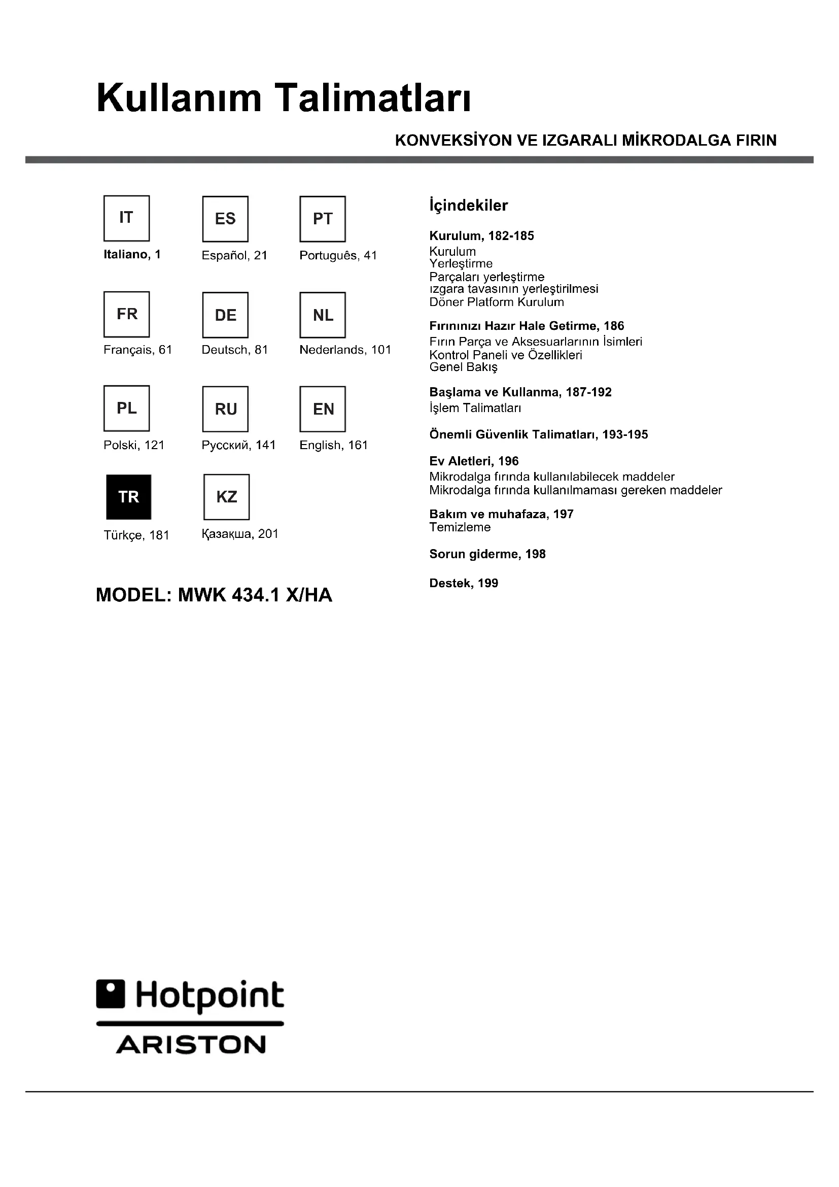 Cihazın kılavuzunu ücretsiz bulun MWK 434.1 XHA HOTPOINT-ARISTON PDF formatında.