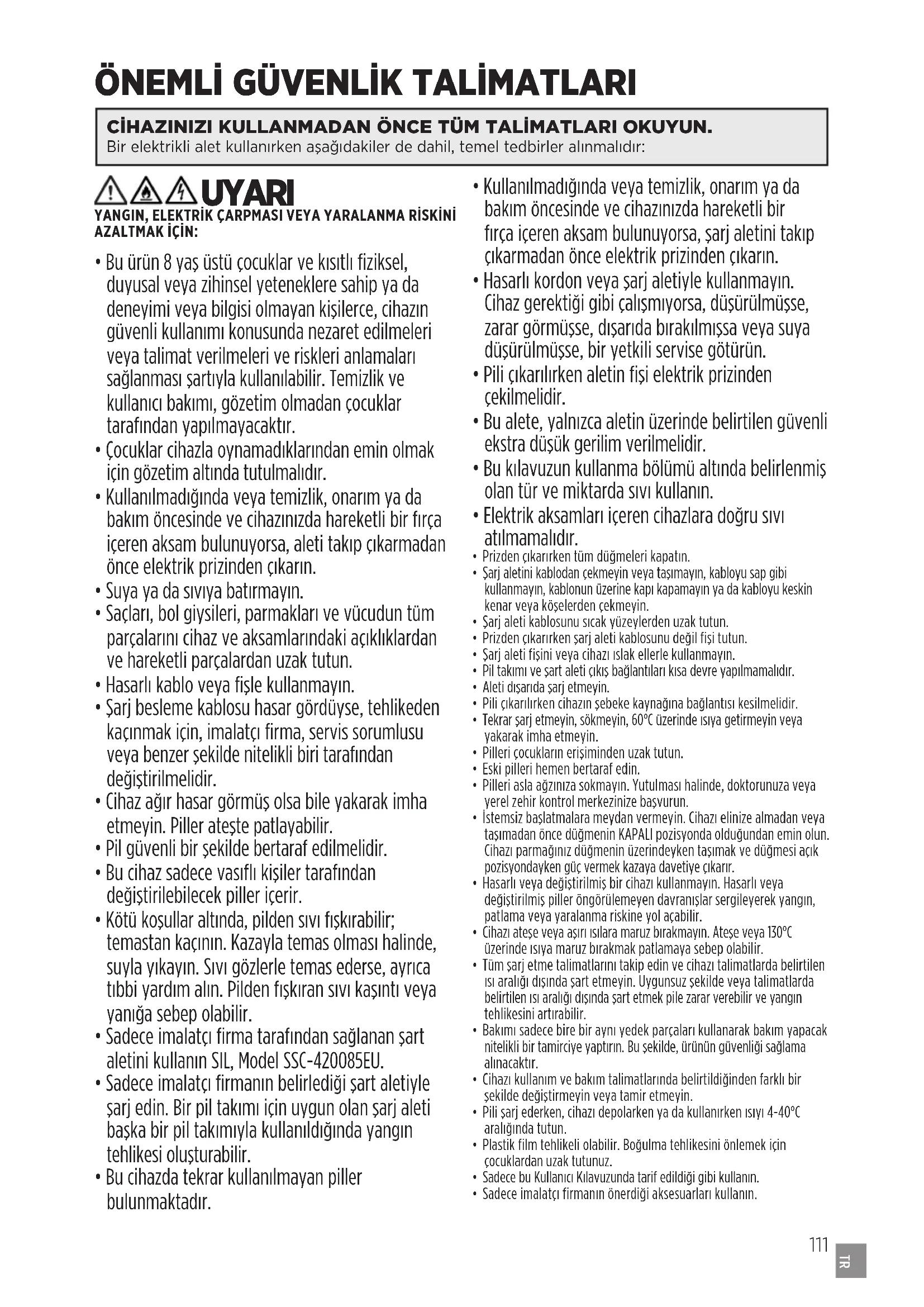 - Bu cihaz sadece vasıflı kişiler tarafından değiştirilebilecek piller içerir.