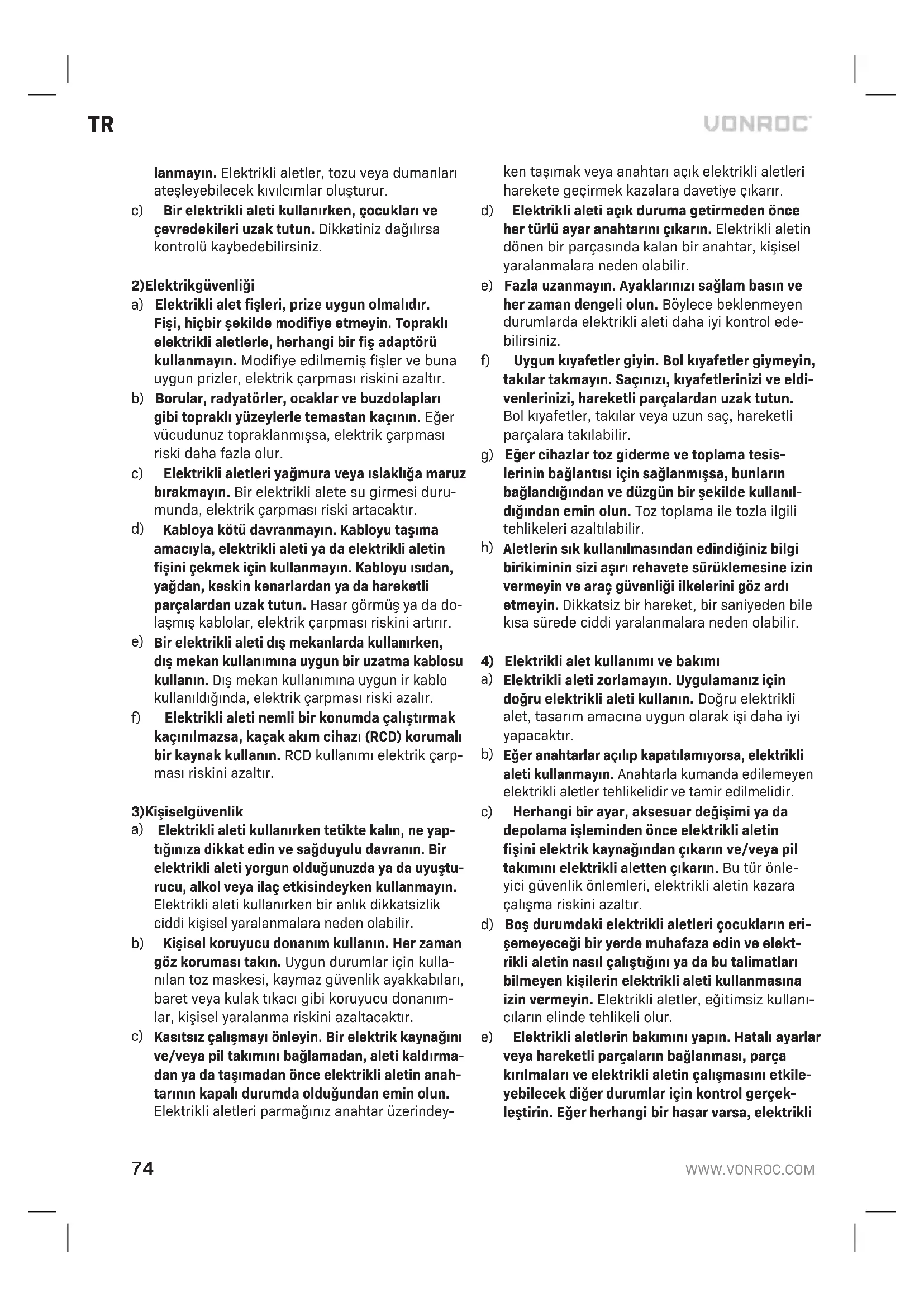 KULLANIM KILAVUZU PM503AC Vonroc
