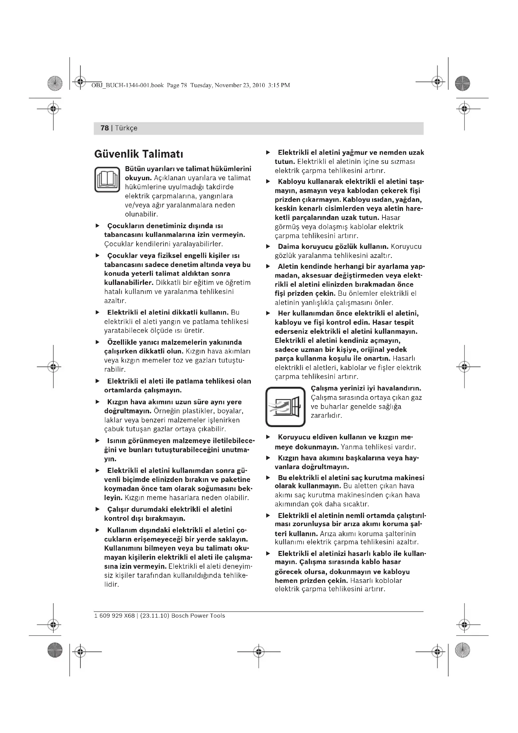 Bu elektrikli el aletini sac kurutma makinesi olarak kullanmayin. Bu aletten cikan hava akimi sac kurutma makinesinden cikan hava akimindan cok daha sicaktir.