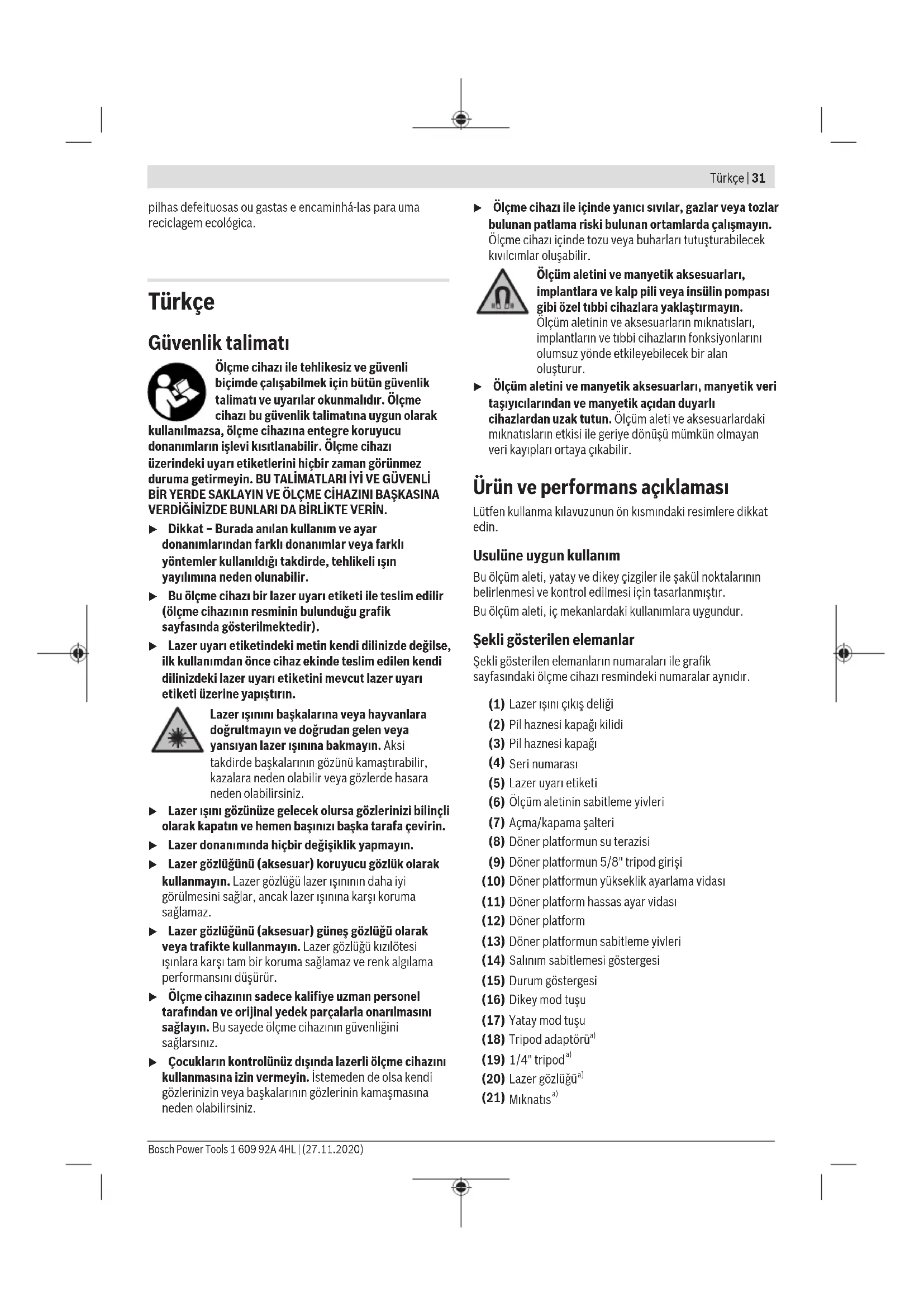 KULLANIM KILAVUZU GLL 315 X Professional BOSCH