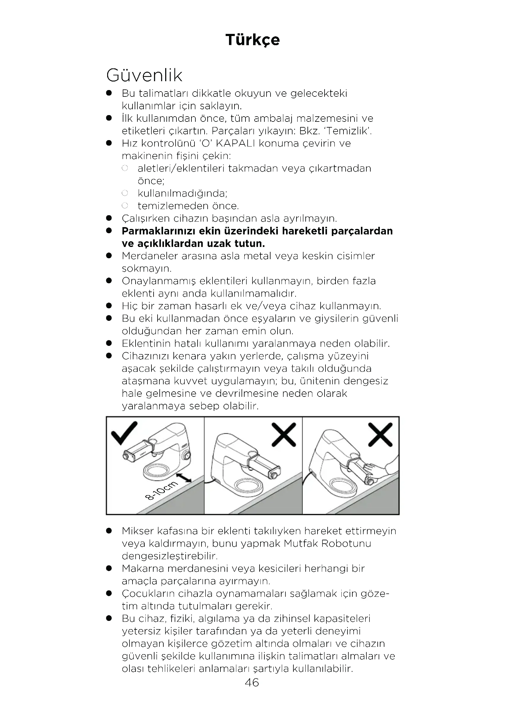 İlave güvenlik uyarıları için Mutfak Robotunuzun kullanma talimatına bakın. Temizlik