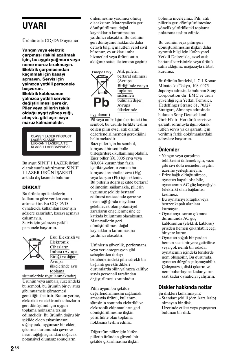 Téléchargez la notice de votre Dvd oynatıcı au format PDF gratuitement ! Retrouvez votre notice DVPSR760HB.EC1 - SONY et reprennez votre appareil électronique en main. Sur cette page sont publiés tous les documents nécessaires à l'utilisation de votre appareil DVPSR760HB.EC1 de la marque SONY.