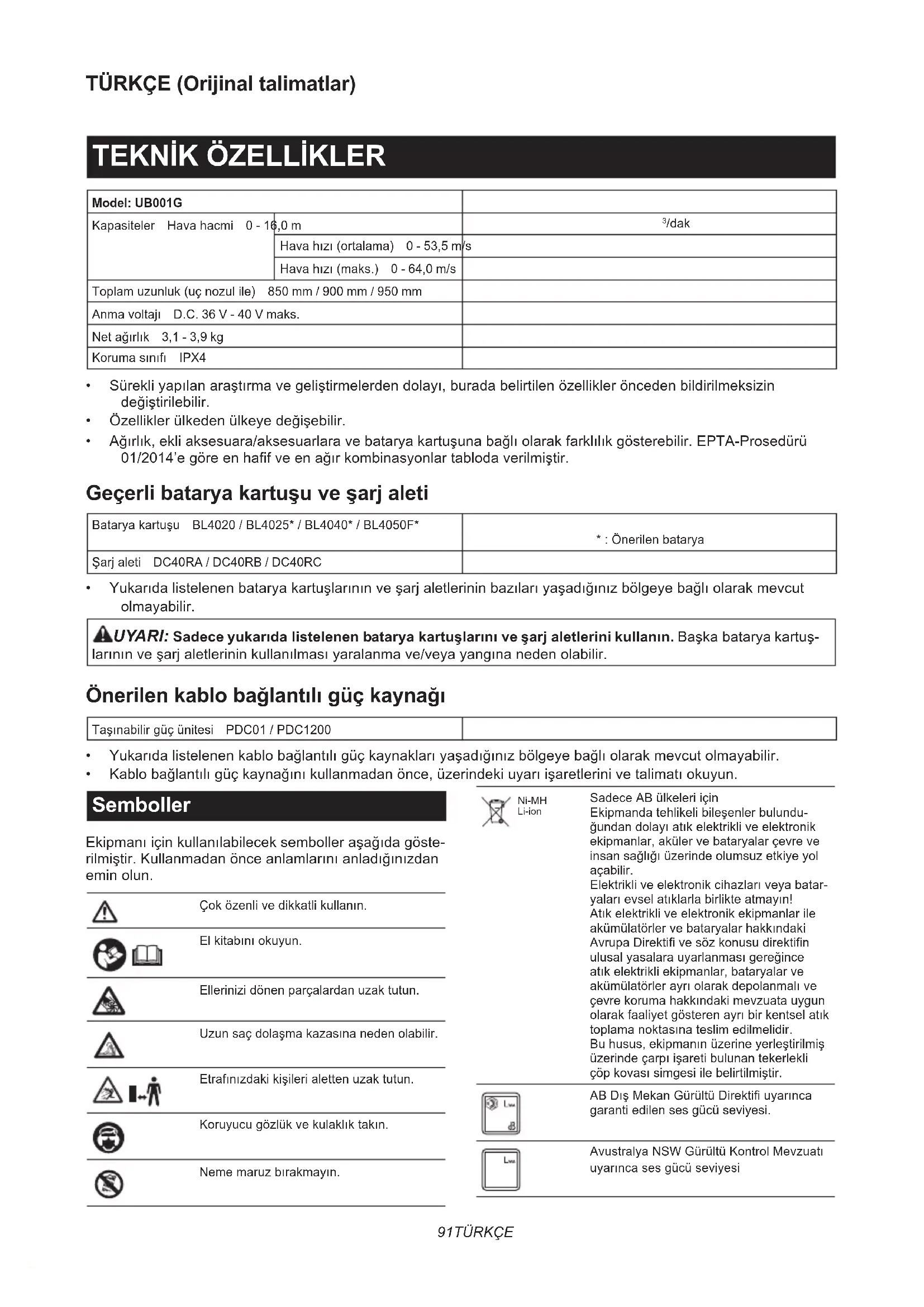 KULLANIM KILAVUZU UB001GZ MAKITA