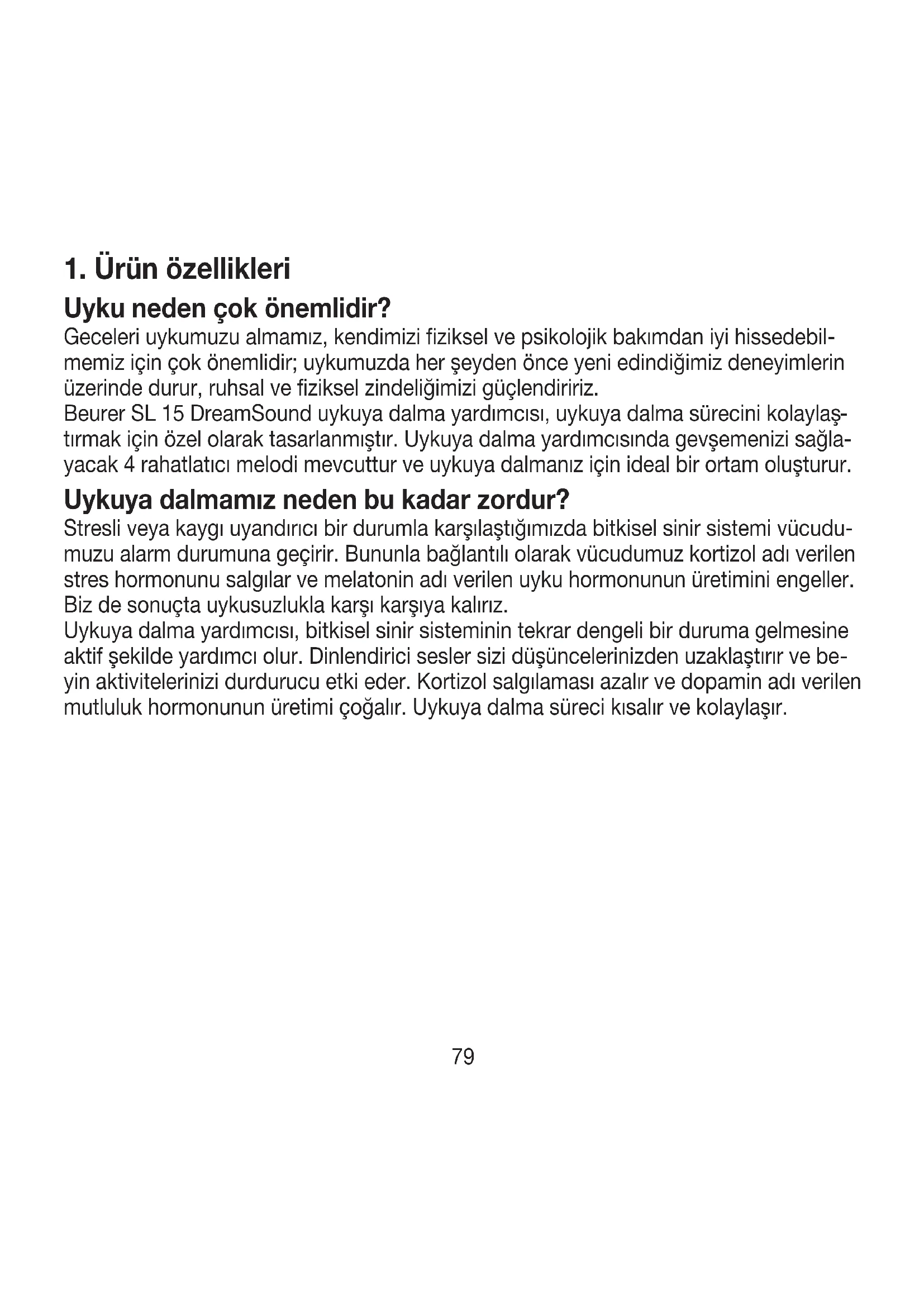 Uyku neden çok önemlidir? Geceleri uykumuzu almamız, kendimizi fiziksel ve psikolojik bakımdan iyi hissedebil- memiz için çok önemlidir; uykumuzda her şeyden önce yeni edindiğimiz deneyimlerin üzerinde durur, ruhsal ve fiziksel zindeliğimizi güçlendiririz. Beurer SL 15 DreamSound uykuya dalma yardımcısı, uykuya dalma sürecini kolaylaş