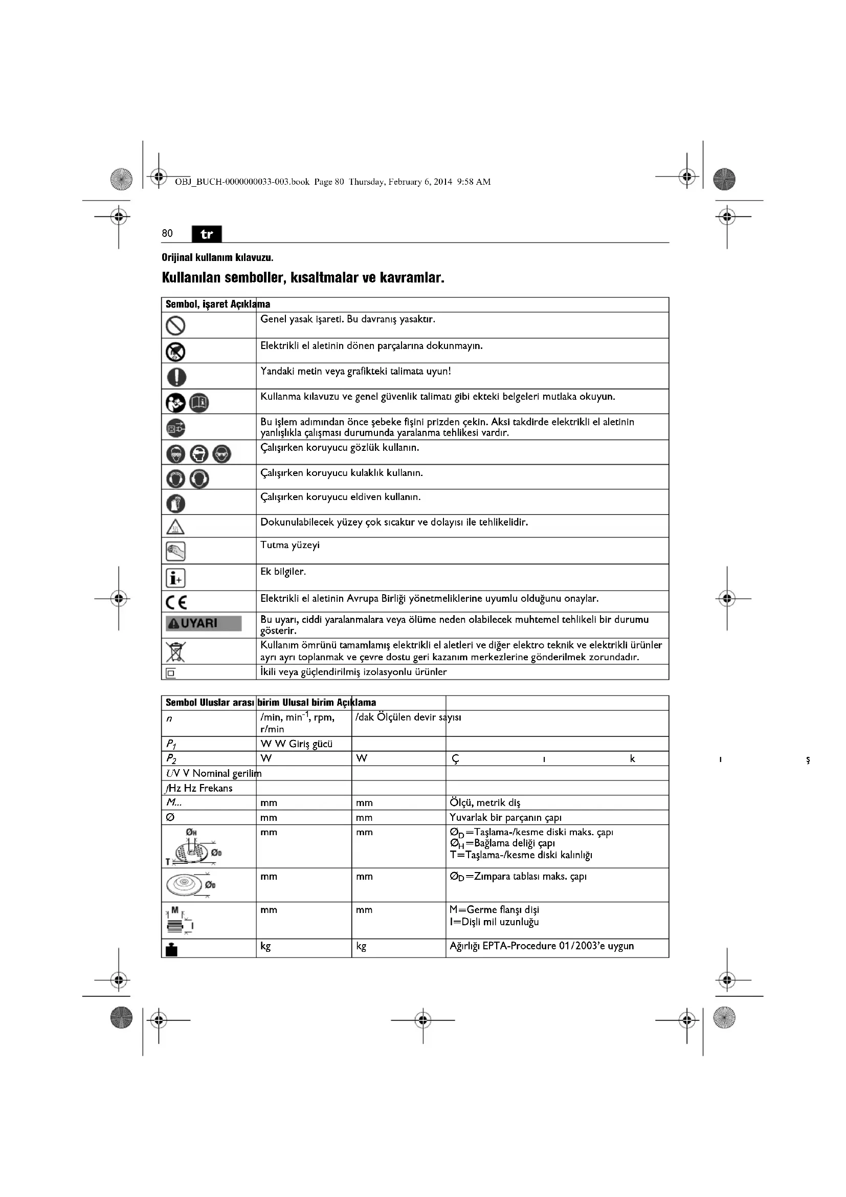 Temel ve türetilen değerler uluslar arası birimler sistemi SI’den alınmıştır. Sembol Uluslar arası birim Ulusal birim Açıklama OBJ_BUCH-0000000033-003.book Page 81 Thursday, February 6, 2014 9:58 AM82