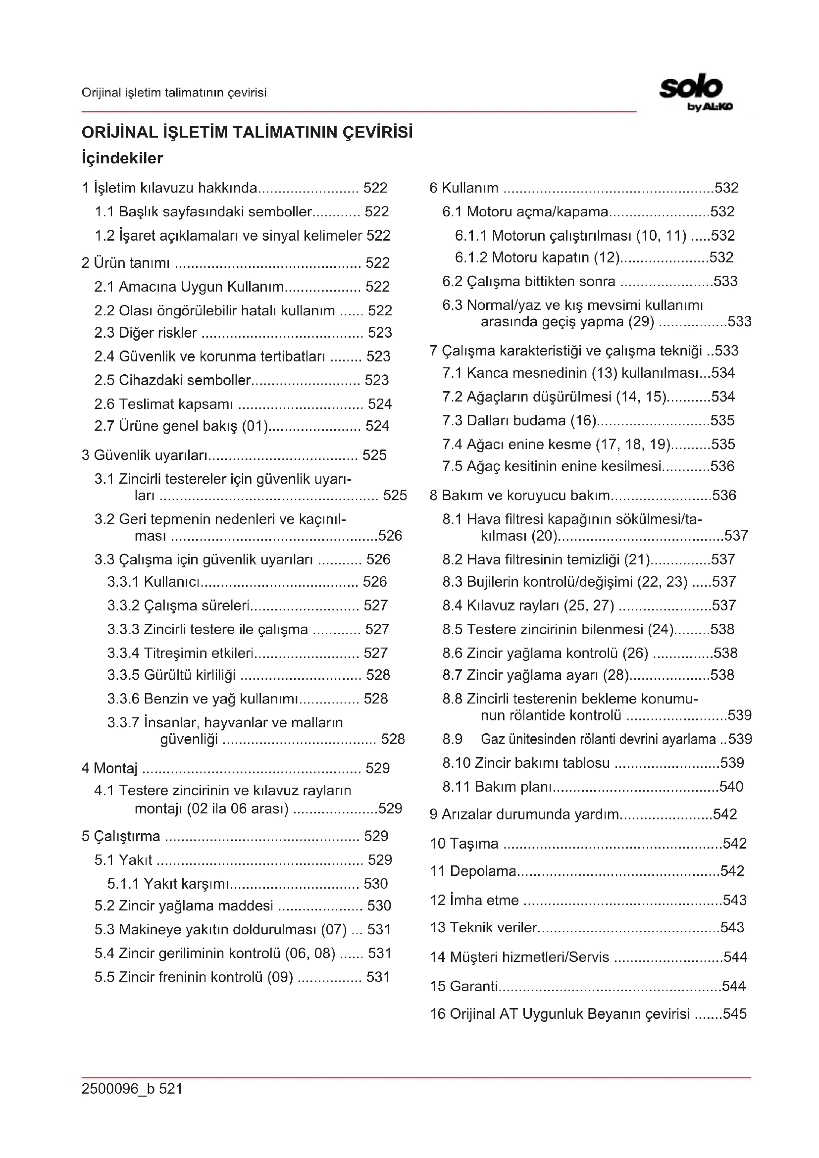6436 - Testere SOLO - Ücretsiz kullanım kılavuzu