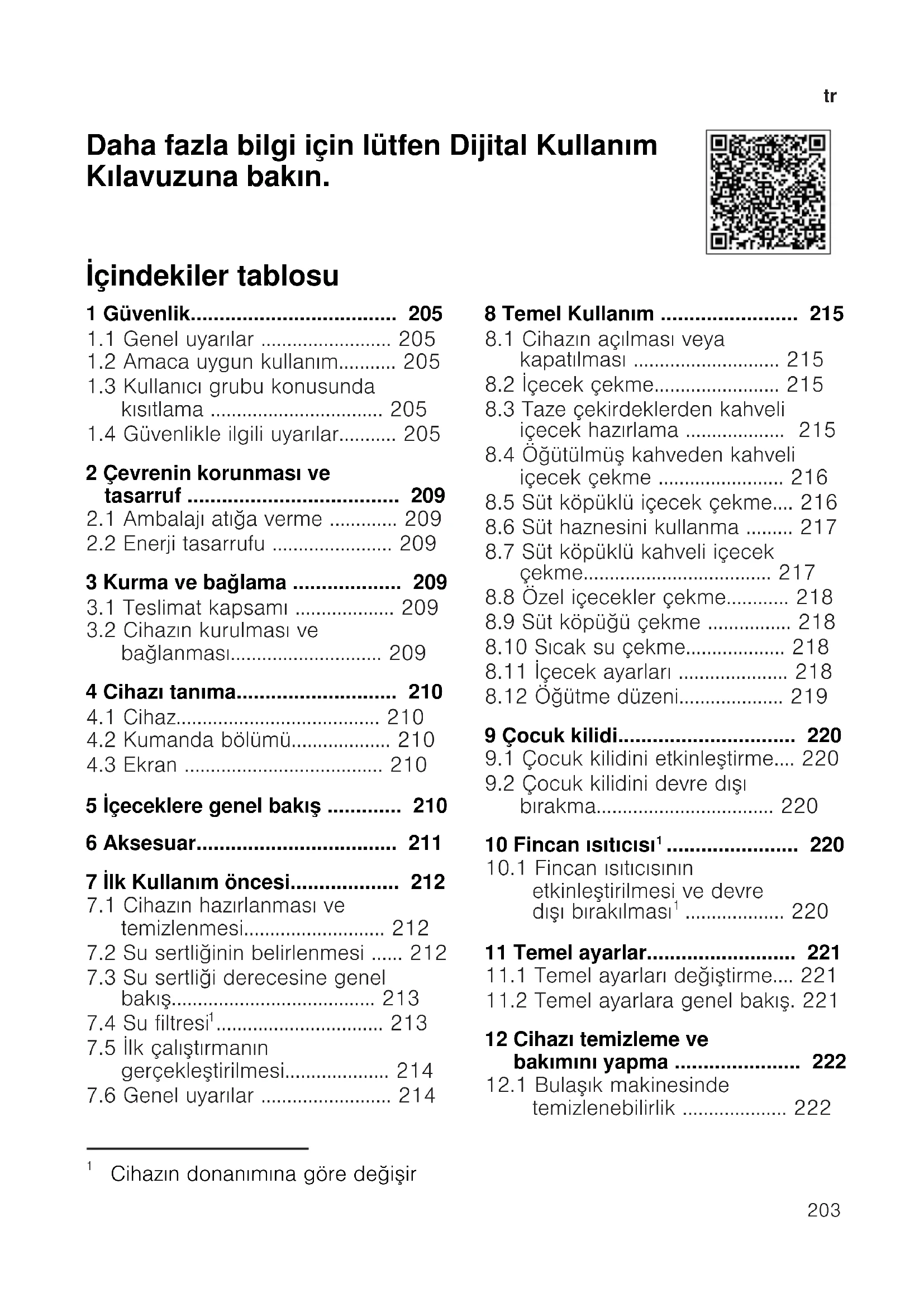 Daha fazla bilgi için lütfen Dijital Kullanım Kılavuzuna bakın. İçindekiler tablosu 1 Güvenlik....................................205