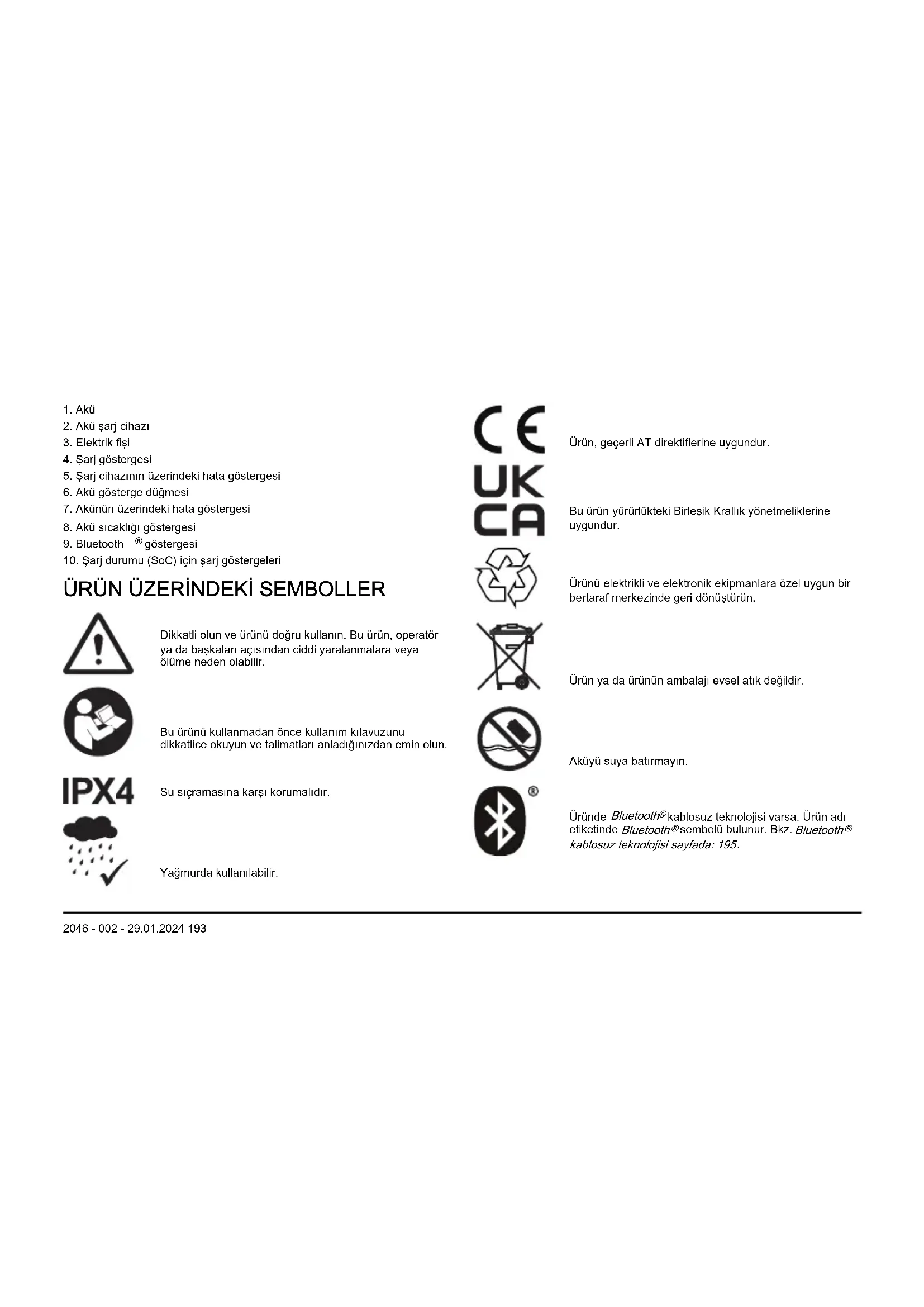2046 - 002 - 29.01.2024 193Not: Ürünün üzerindeki diğer semboller/etiketler, bazı ticari alanların sertifikalandırma gereklilikleri ile ilgilidir.