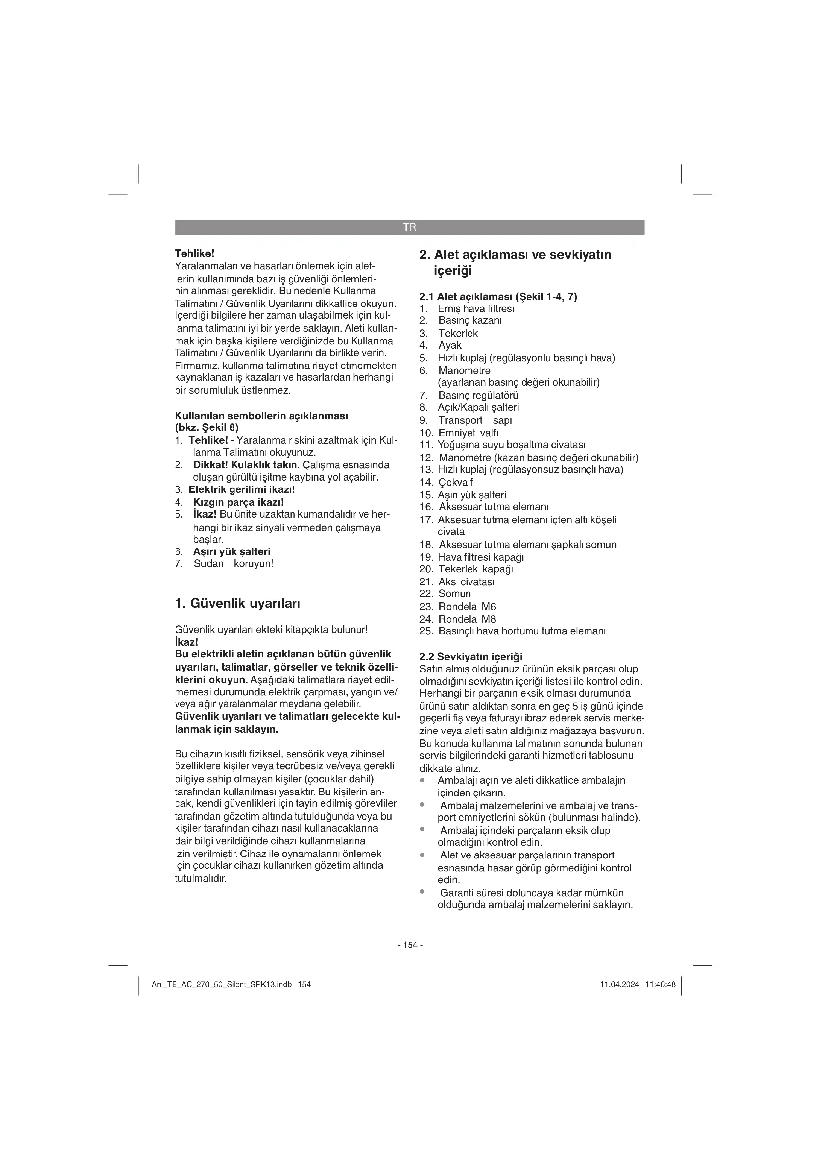 Güvenlik uyarilari ve talimatlari gelecekte kulanmak icin saklayin.