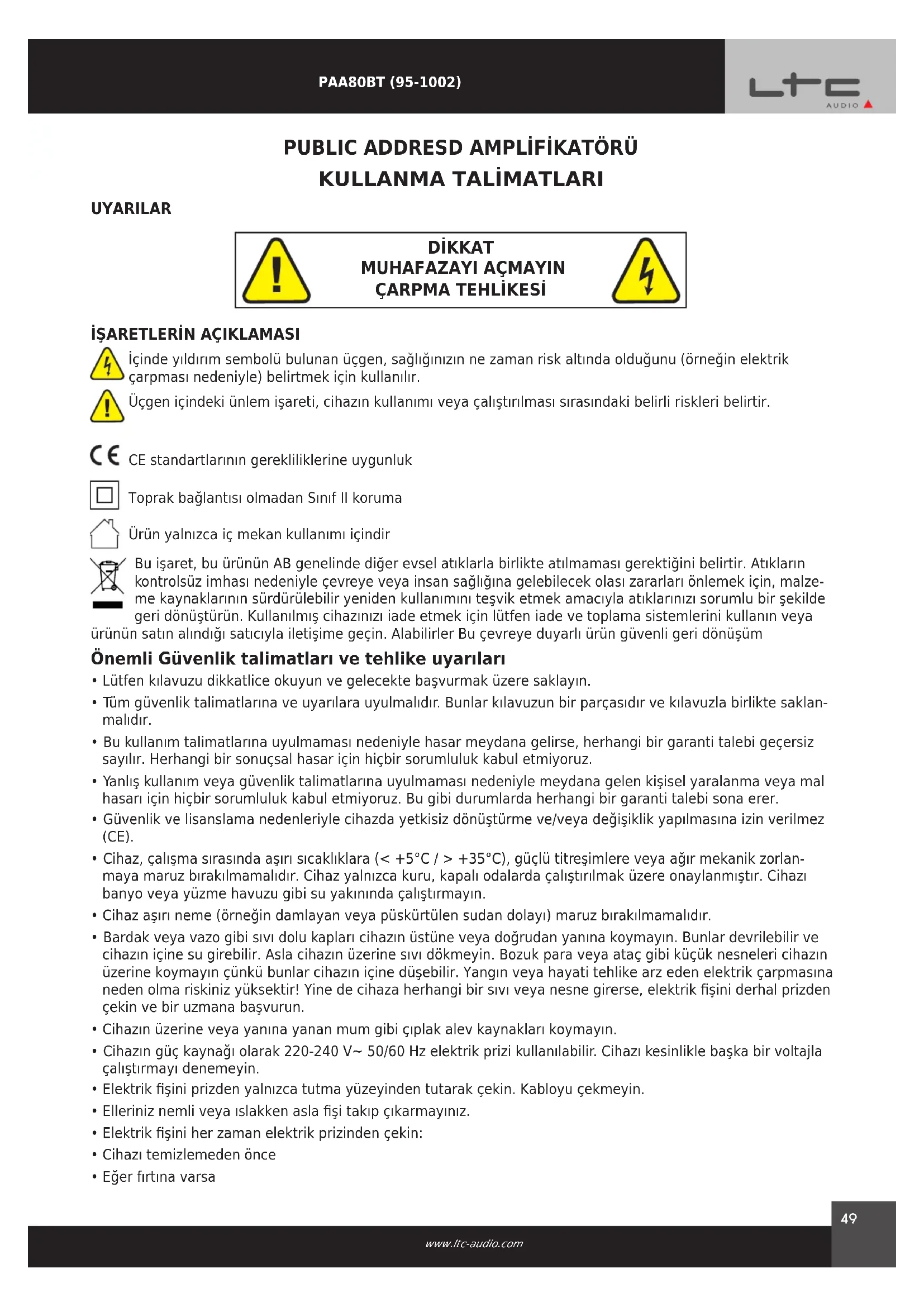 Cihazın kılavuzunu ücretsiz bulun PAA80BT LTC PDF formatında.