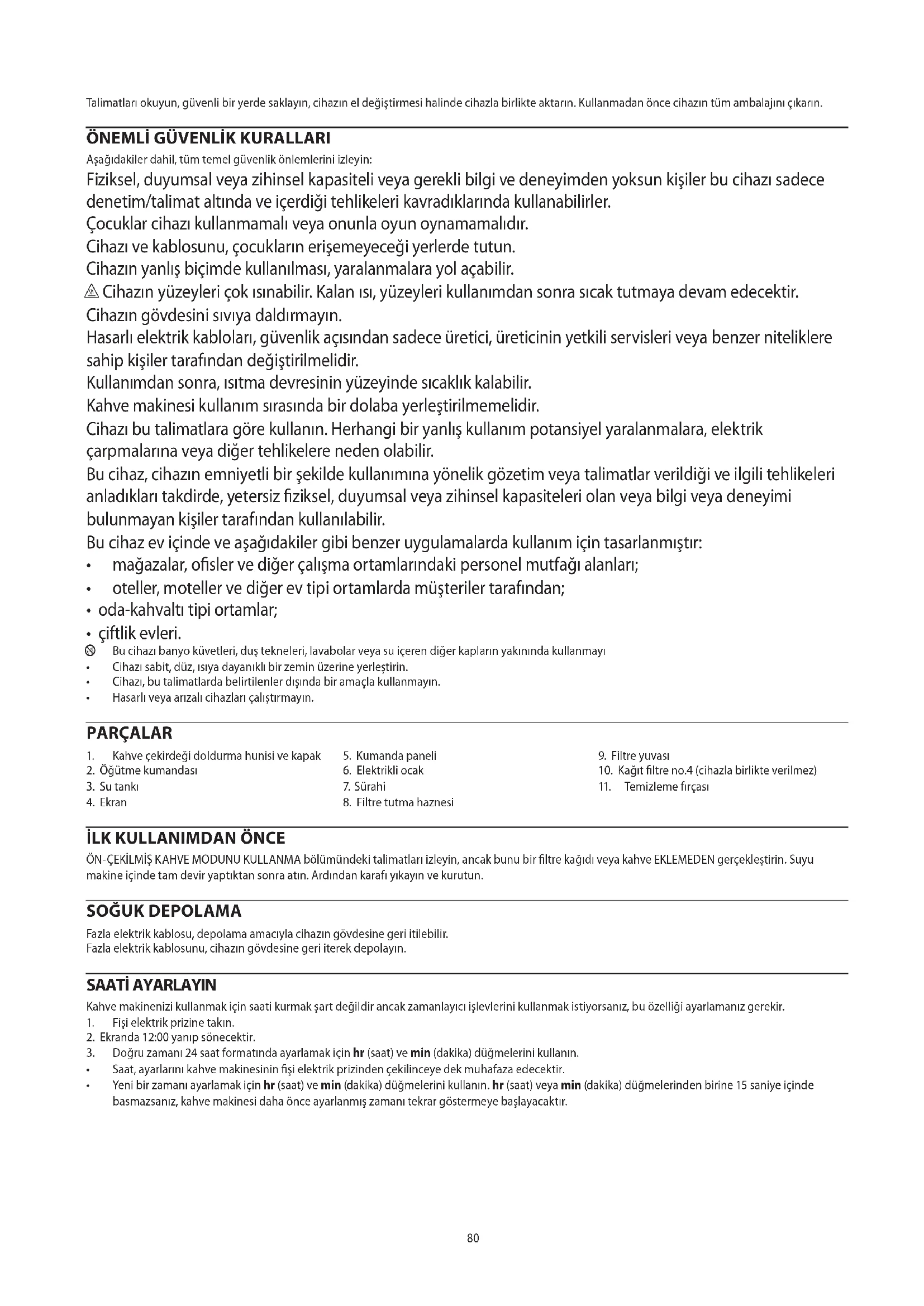- Saat, ayarlarını kahve makinesinin şi elektrik prizinden çekilinceye dek muhafaza edecektir.