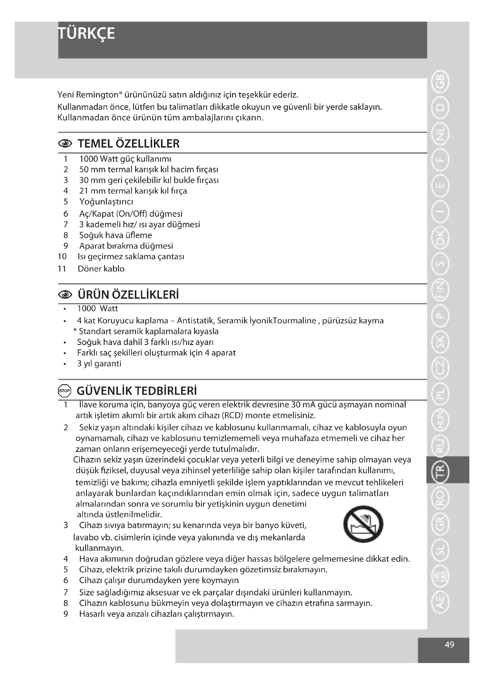 Cihazın kılavuzunu ücretsiz bulun AS7051 REMINGTON PDF formatında.