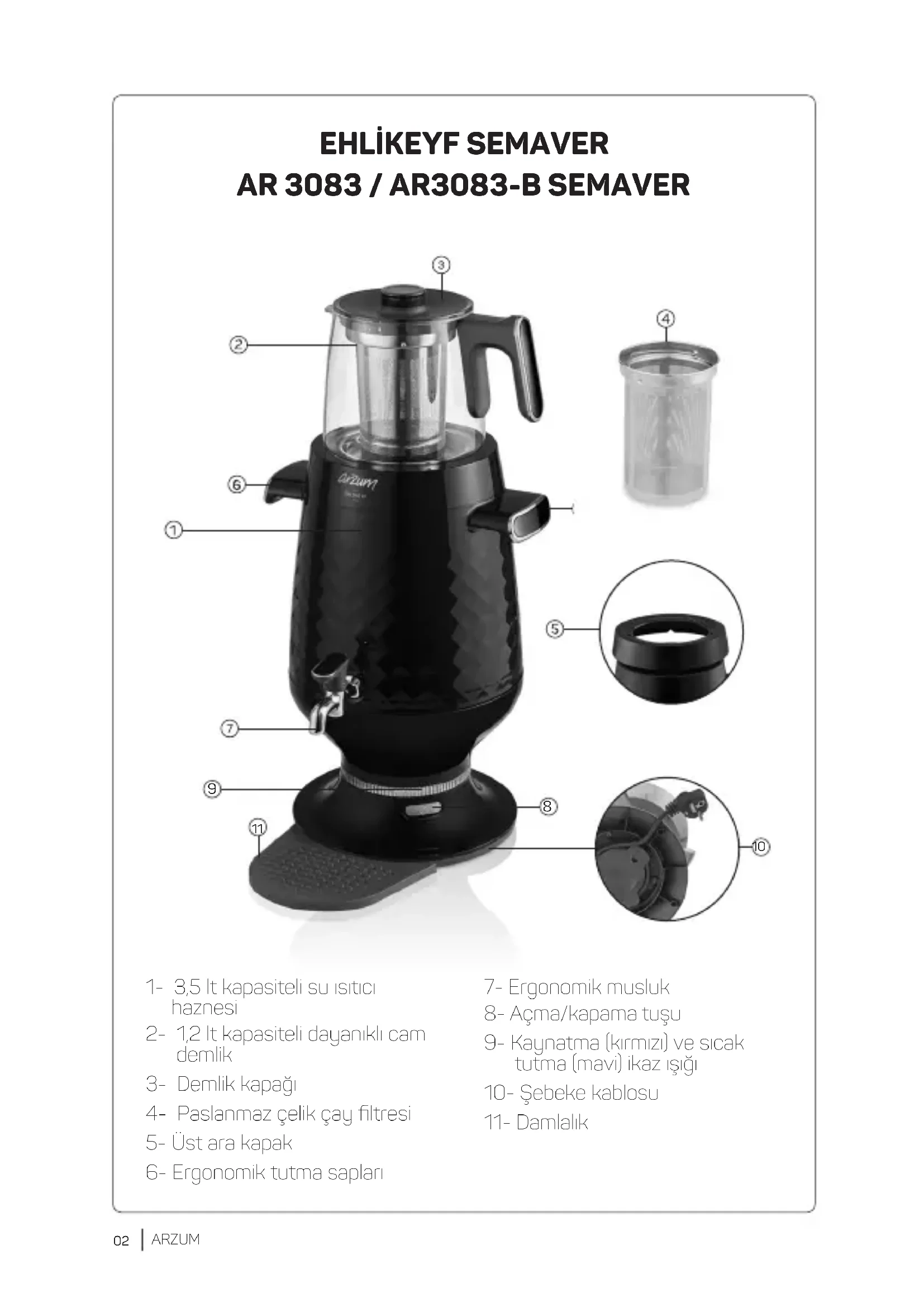 Cihazın kılavuzunu ücretsiz bulun Ehlikeyf AR3083 Arzum PDF formatında.