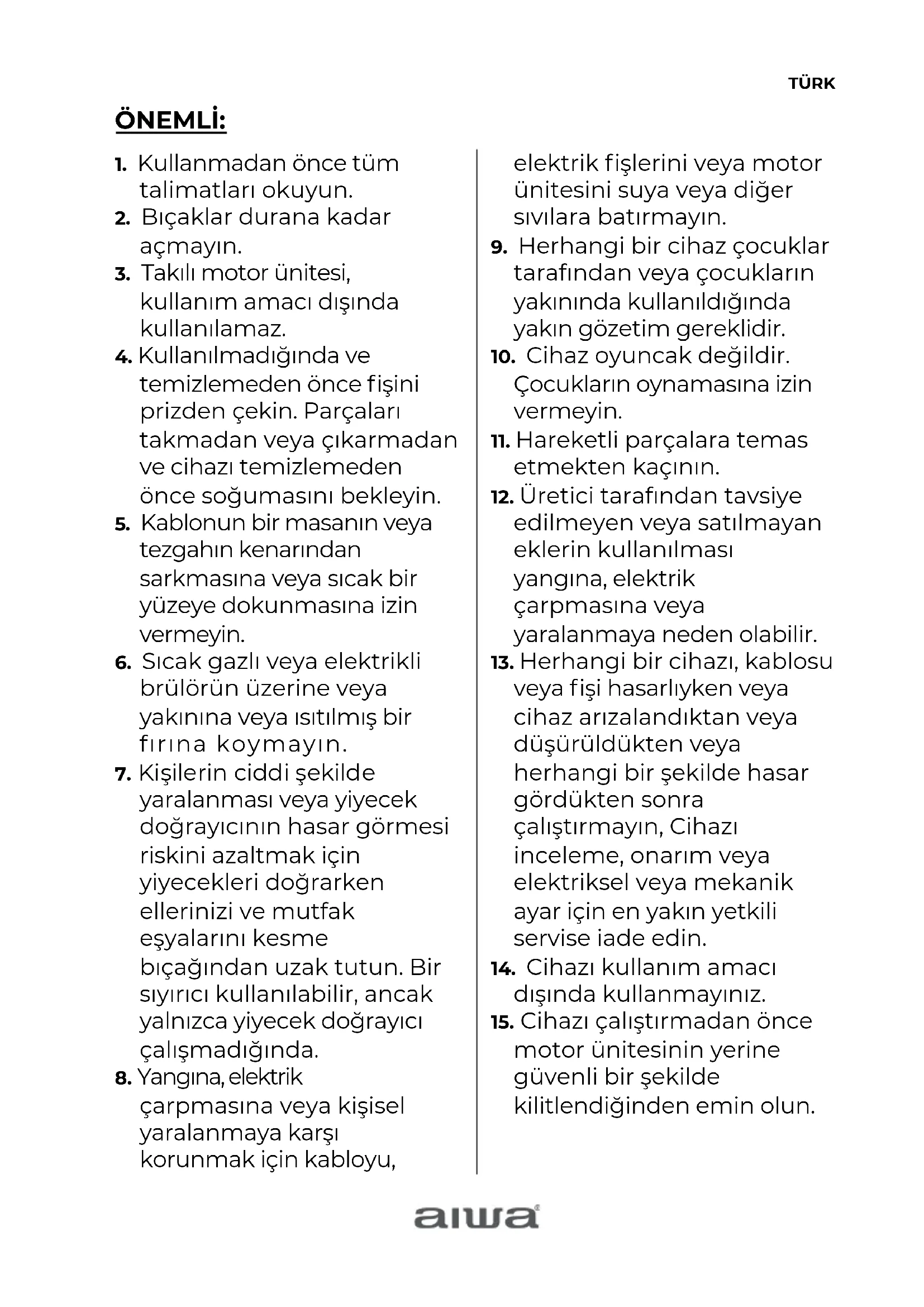 kullanmayın. BU TALİMATLARI KAYDEDİN.