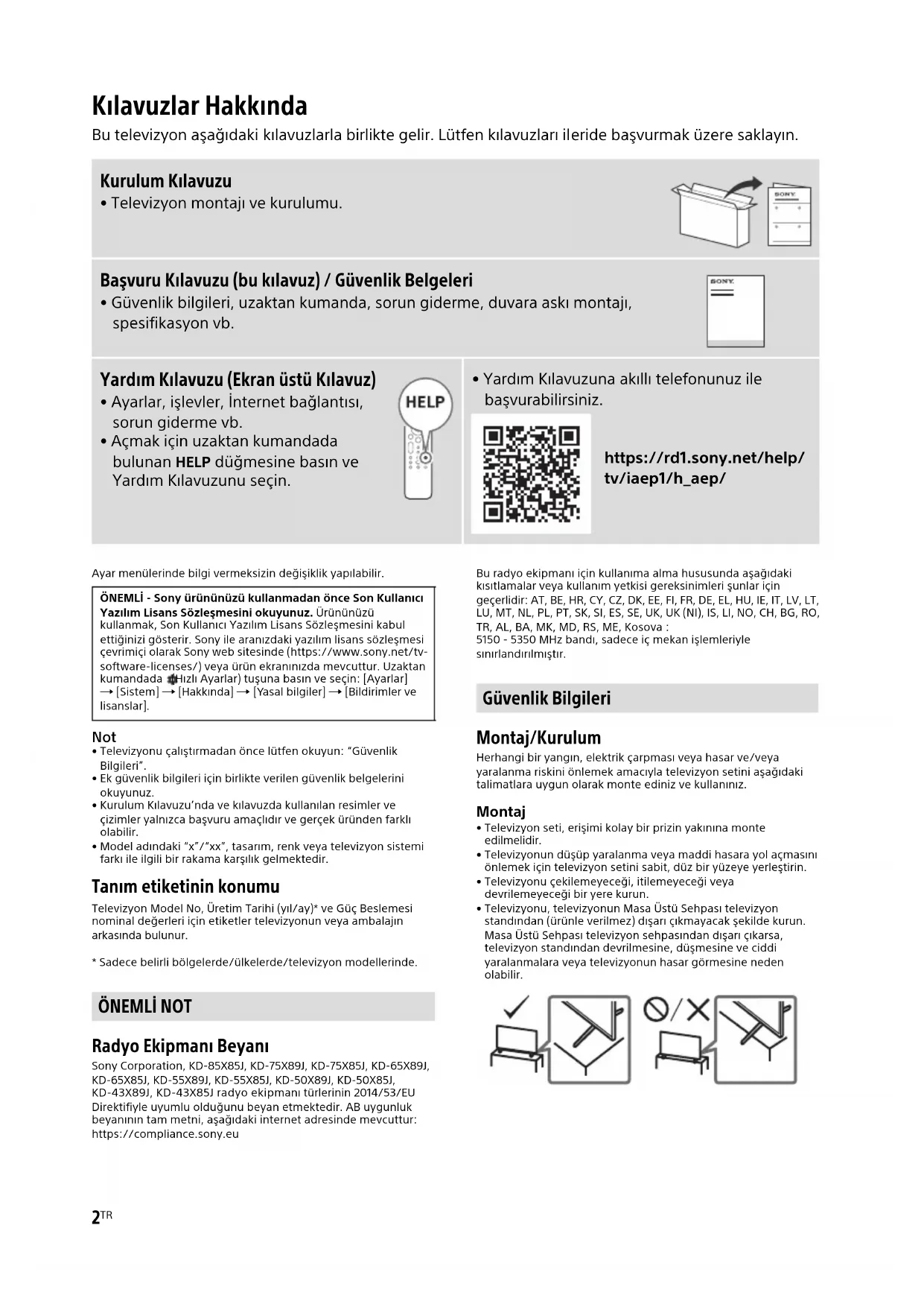 Cihazınız için talimatları indirin Televizyon PDF formatında ücretsiz! Kılavuzunuzu bulun KD85X85TJ - SONY ve elektronik cihazınızı yeniden ele alın. Bu sayfada cihazınızın kullanımı için gerekli tüm belgeler yayınlanmaktadır. KD85X85TJ markasının SONY.