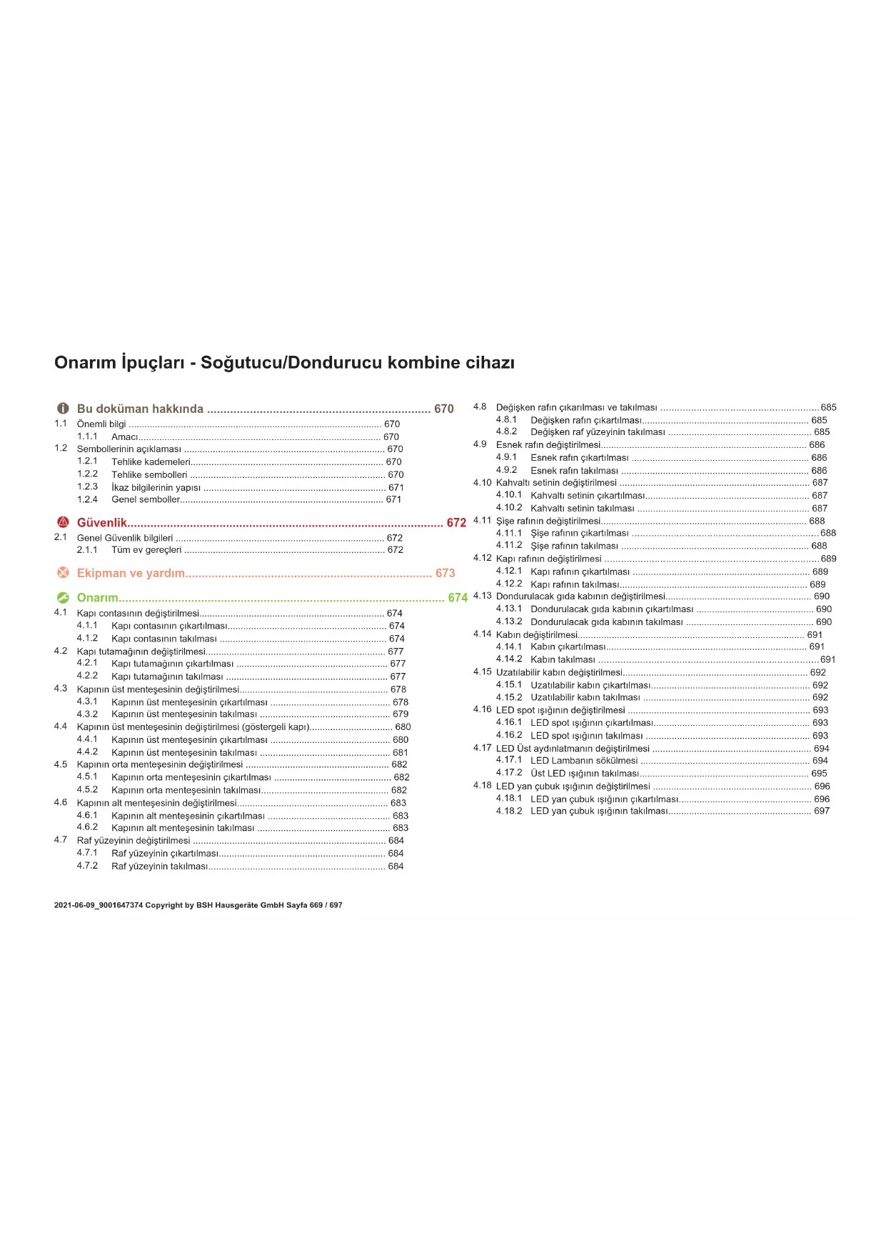 LED yan çubuk ışığının takılması.......................................................697 Onarım İpuçları-Soğutucu/Dondurucu kombine cihazı 2021-06-09_9001647374 Copyright by BSH Hausgeräte GmbH Sayfa669/697Bu doküman hakkında